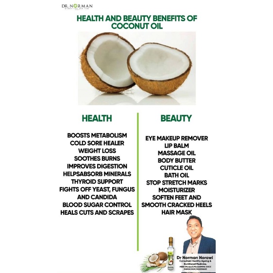 DR NORMAN - MINYAK KELAPA DARA ASLI / ORIGINAL VIRGIN COCONUT OIL (VCO) 300ml
