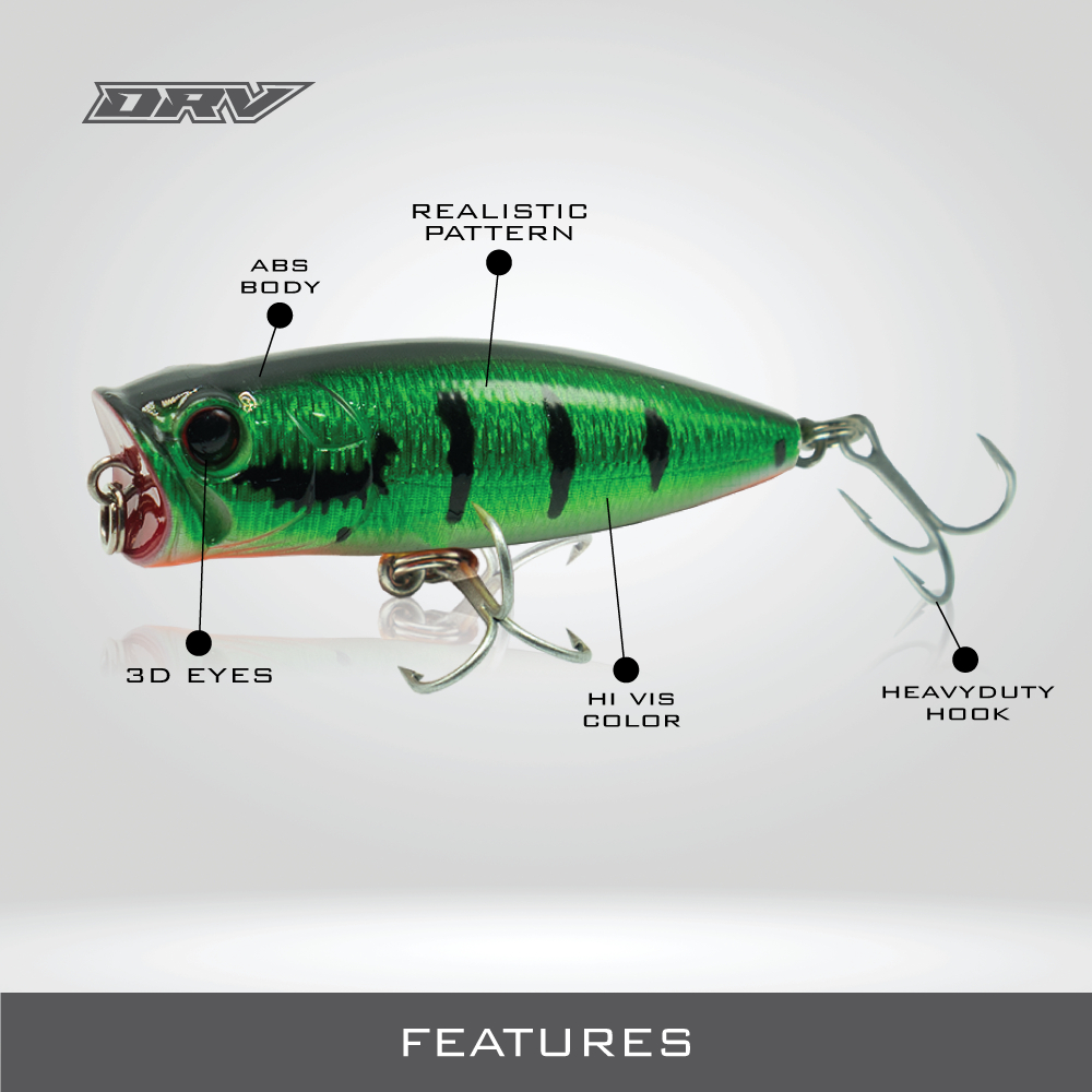 DRAVE Pop Pop Lure 55 And 85mm Topwater Popping Lure Umpan Toman Haruan Peacock Bass Sebarau