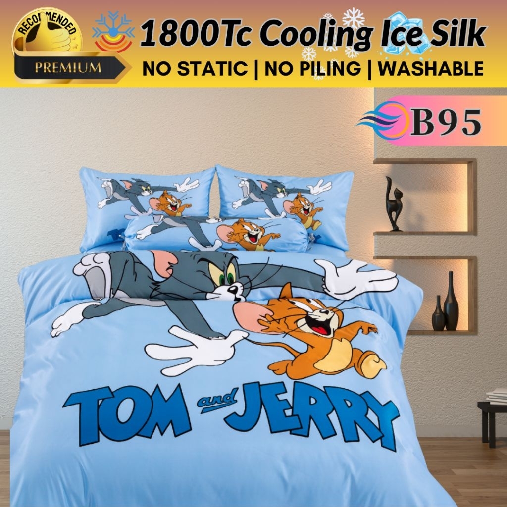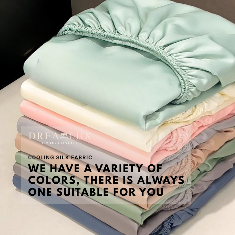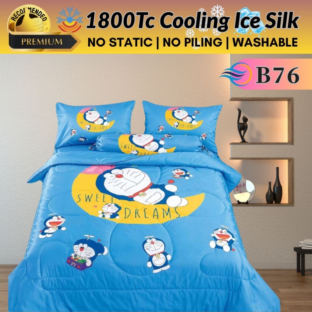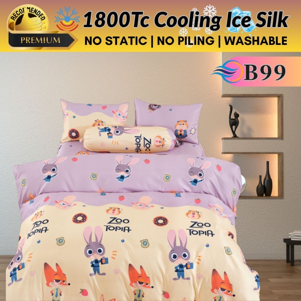 DREAMLUX 1800Tc Ice Silk Satin Super King Bedsheet 6in1 No Comforter | Hello Kitty Labubu 冰丝床单 卡通床单