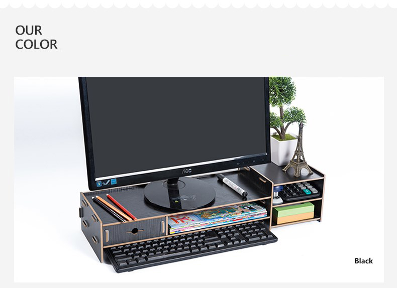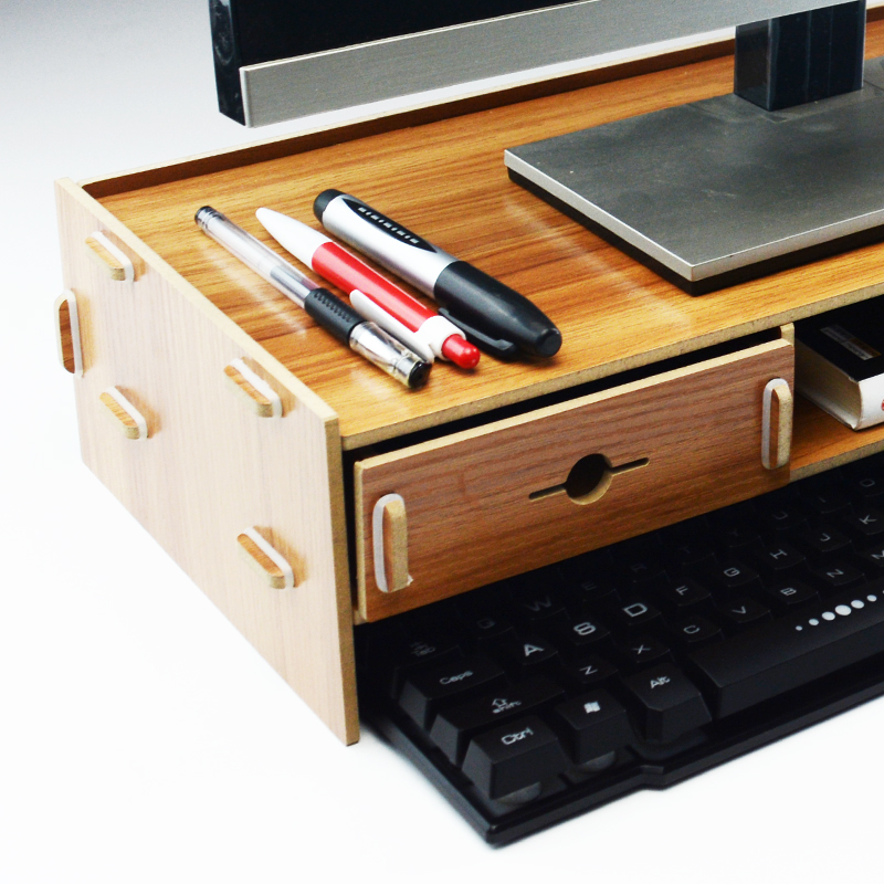 DREMEL DIY Wooden Office Premium Monitor Organizer Rack Desktop Keyboard Monitor Organizer Storage (2188)