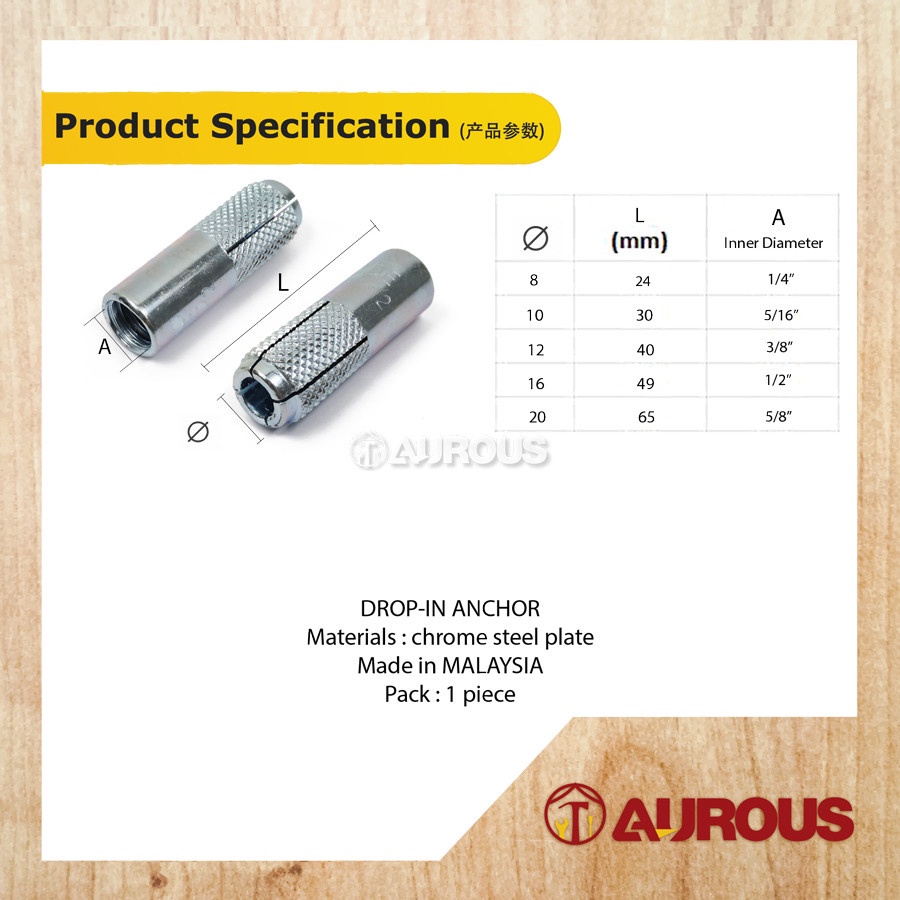 DROP-IN ANCHOR WALL PLUG 1/4'' , 5/16'' , 3/8'' , 1/2'' , 5/8'' - (1PIECE)