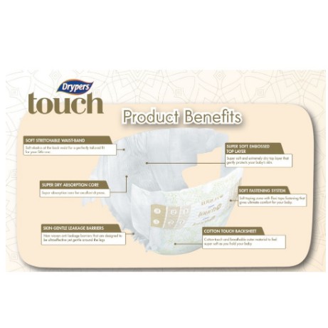 DRYPERS TOUCH XL30 Baby Diaper Baby Disposable Diaper Lampin Bayi Drypers Saiz XL30 Lampin Pakai Buang Lampin Budak