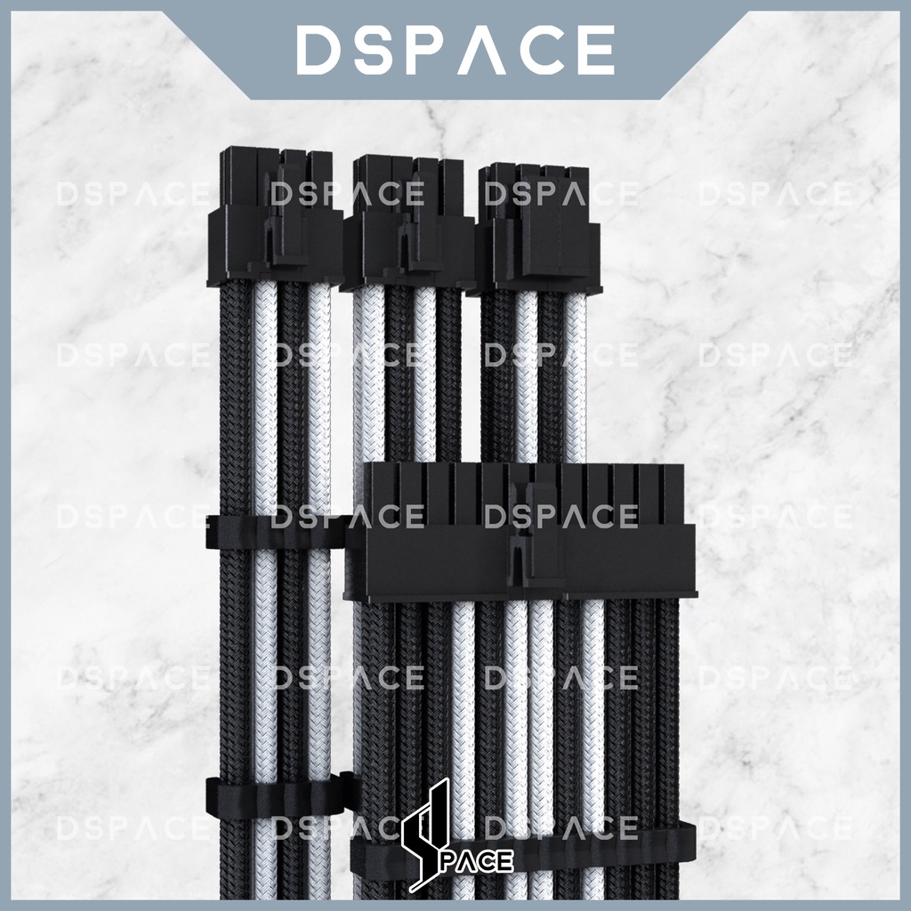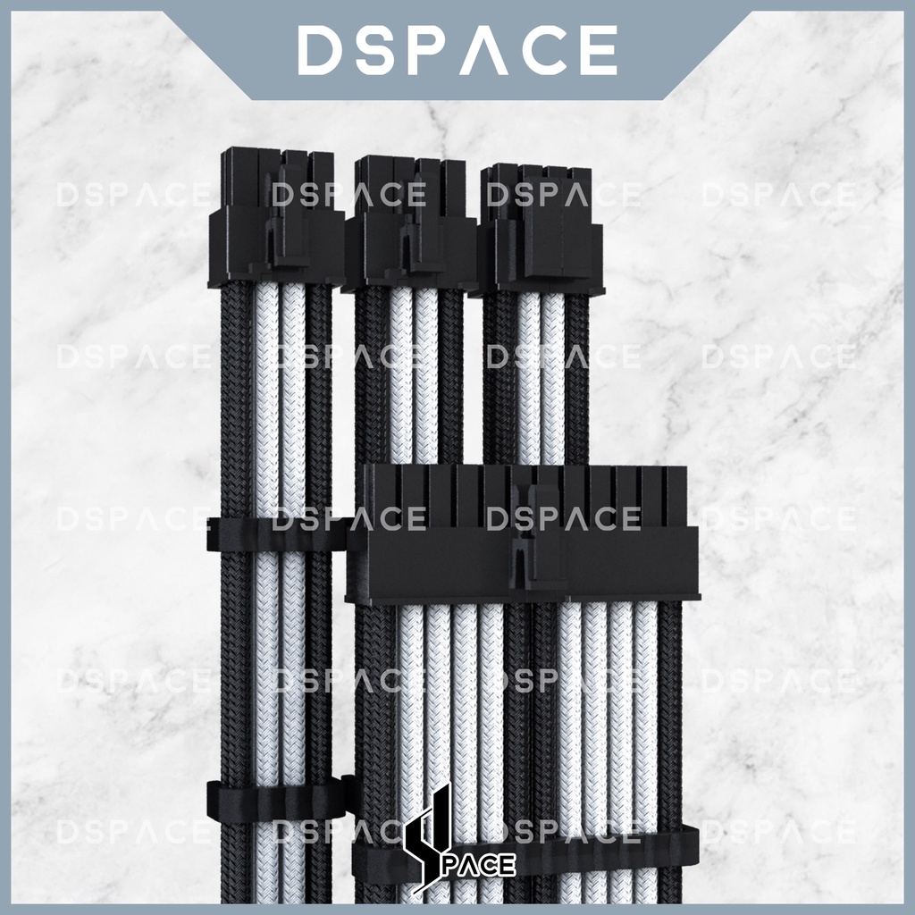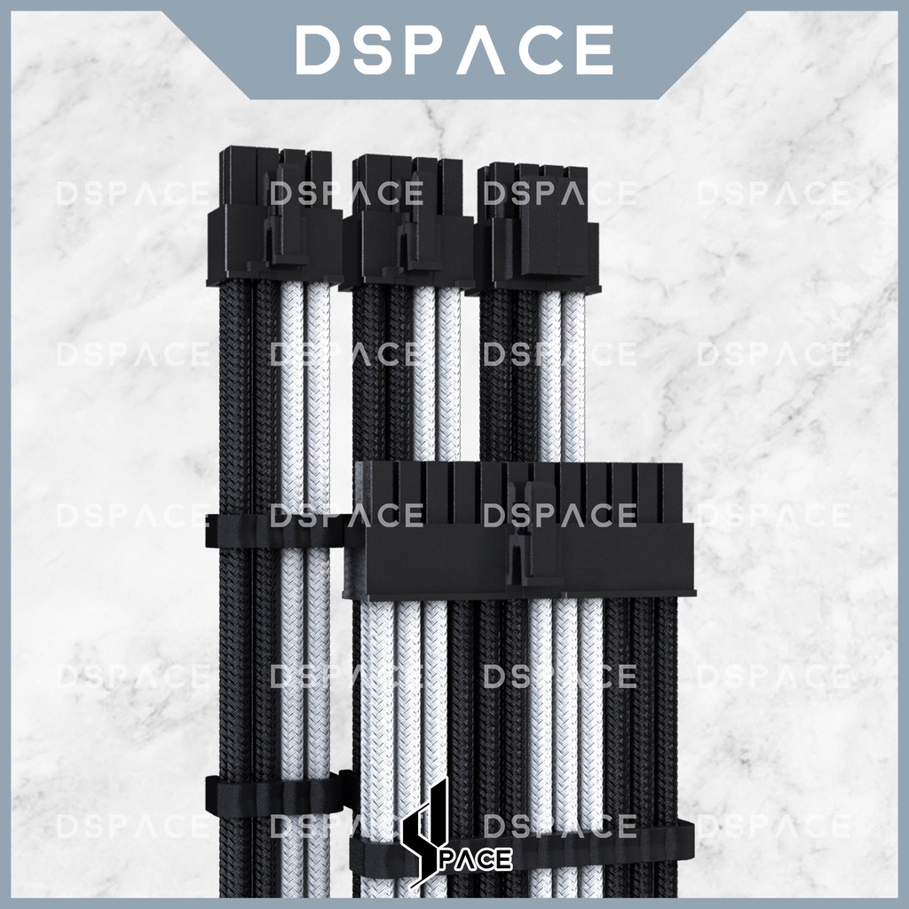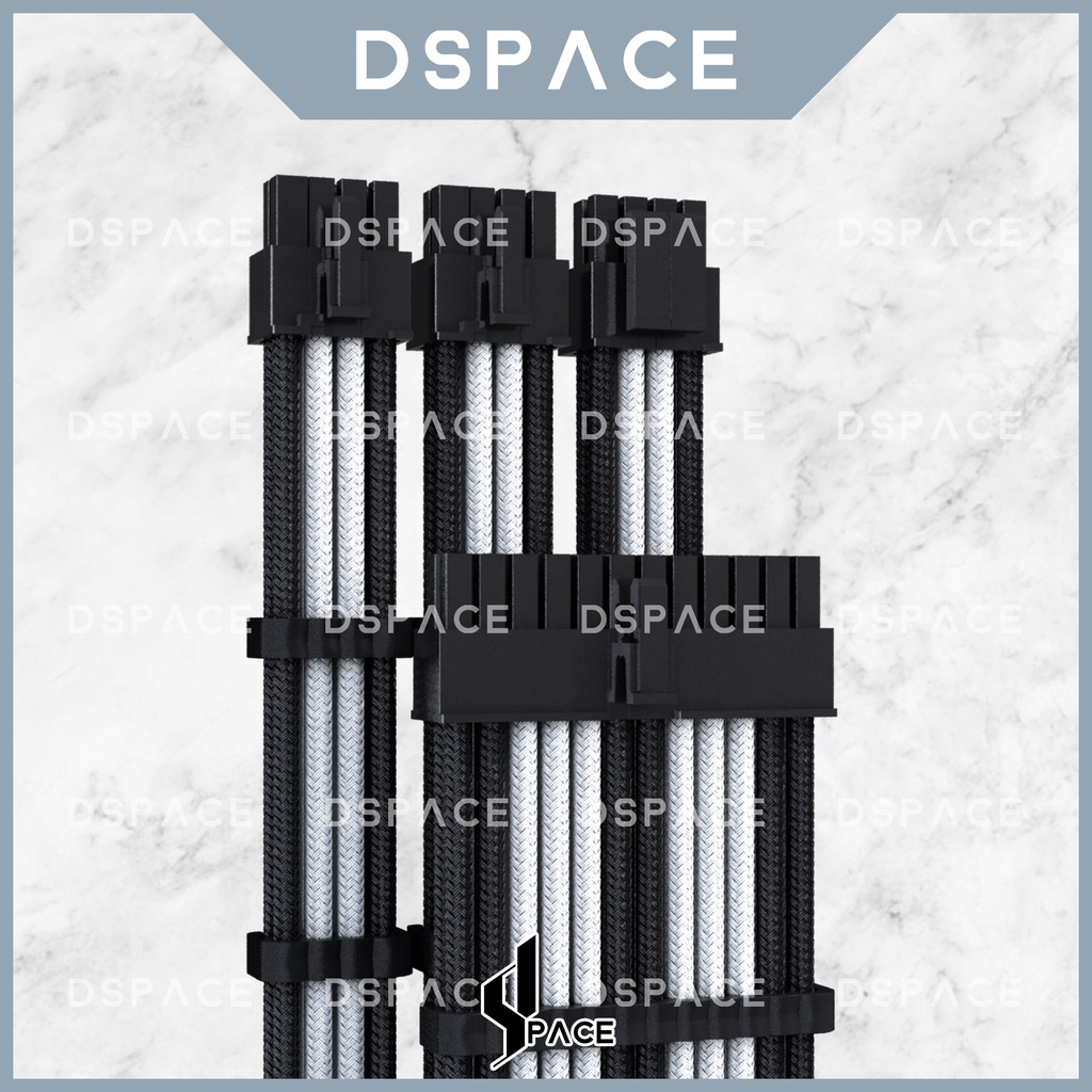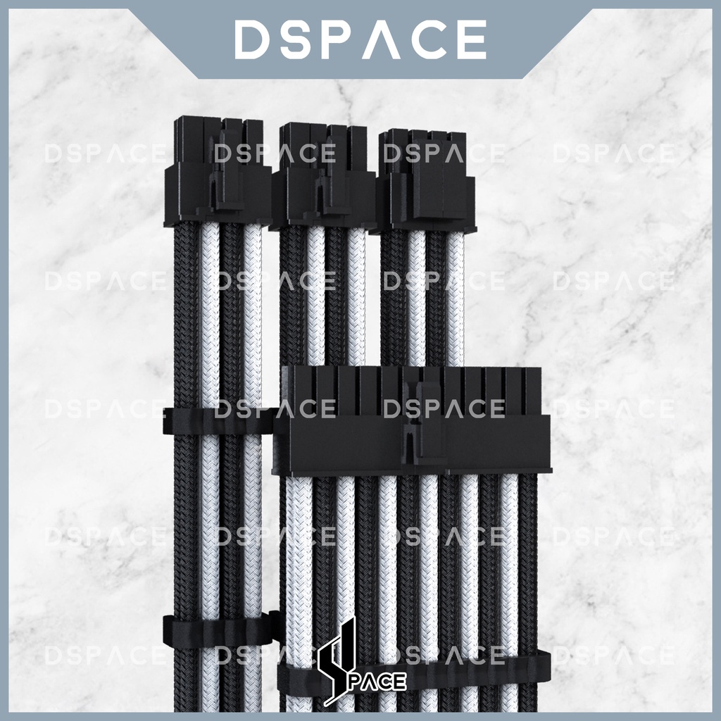 DSPACE MESH-X PSU Black White Premium Sleeve Braided Extension Custom Cable for PC Motherboard Cablemod Aigo Slev.30