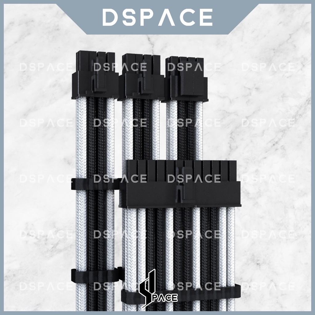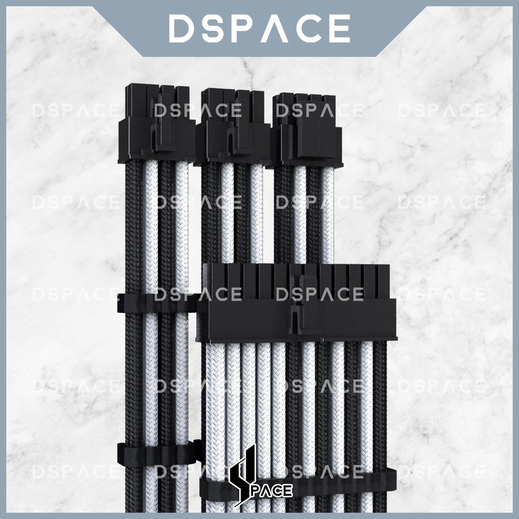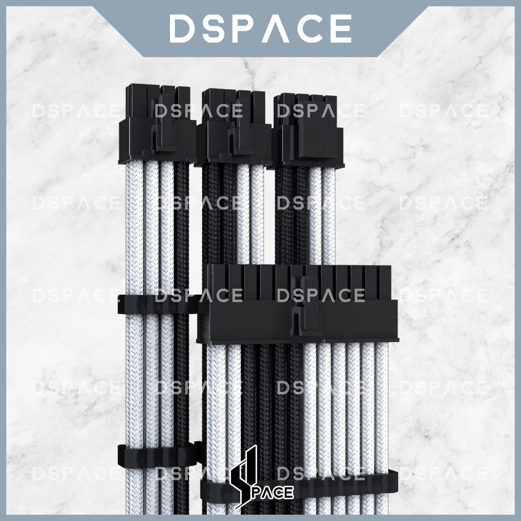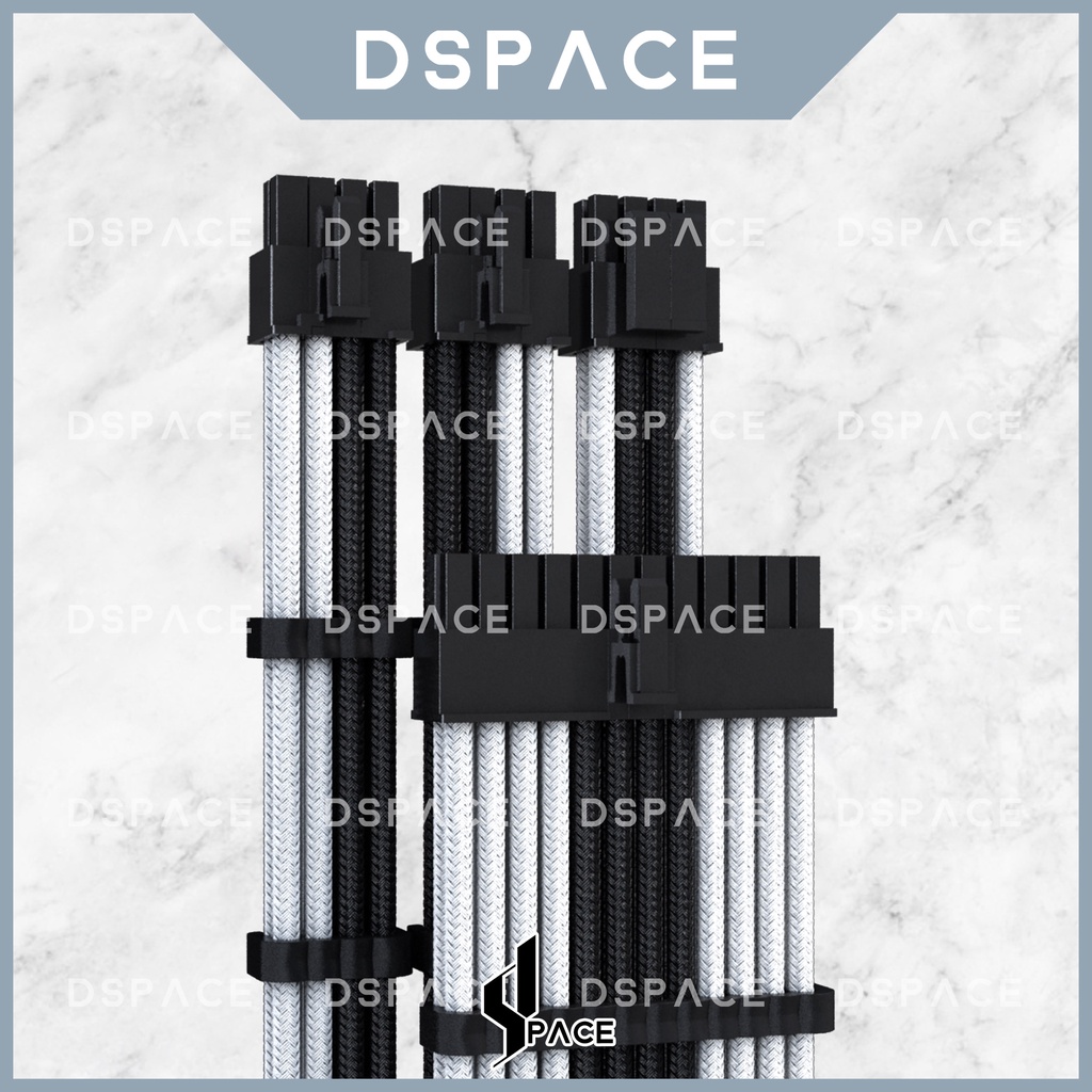 DSPACE MESH-X PSU Black White Premium Sleeve Braided Extension Custom Cable for PC Motherboard Cablemod Aigo Slev.30