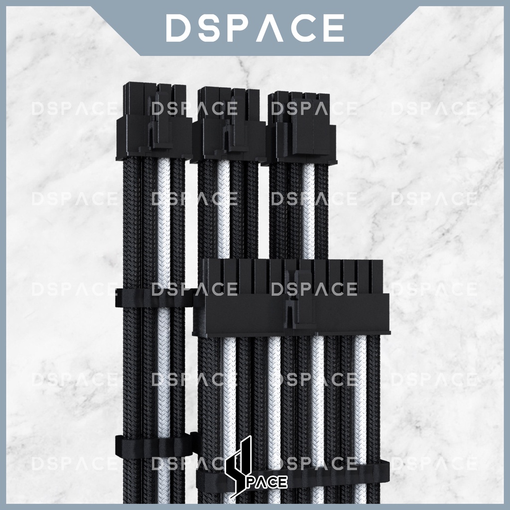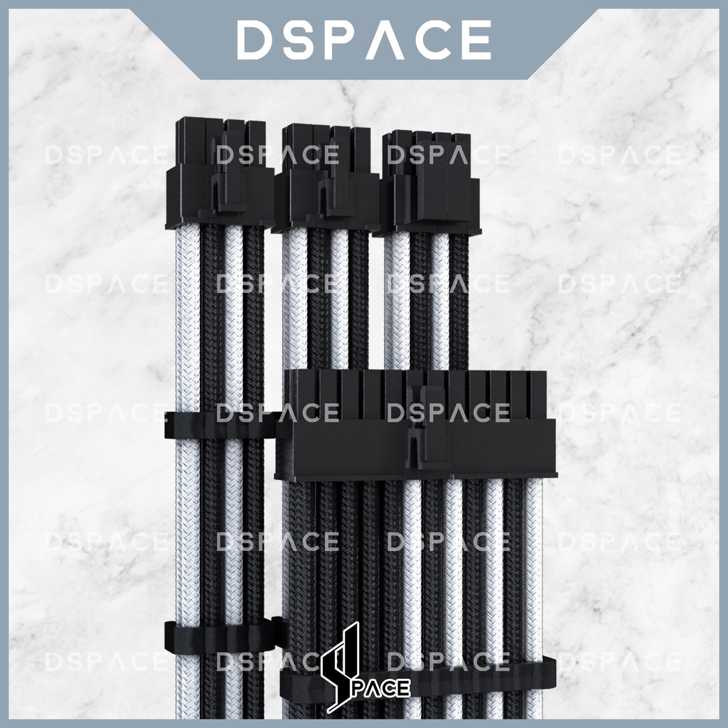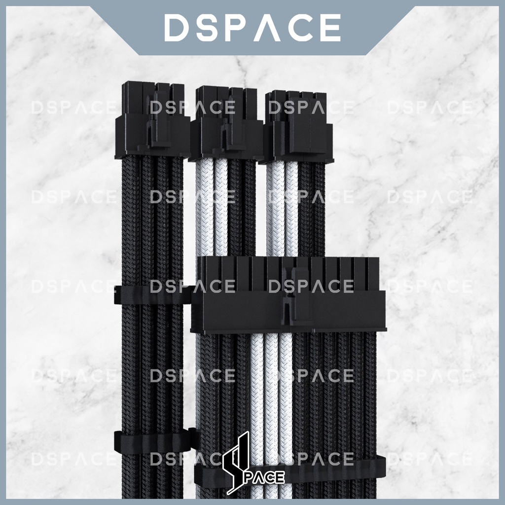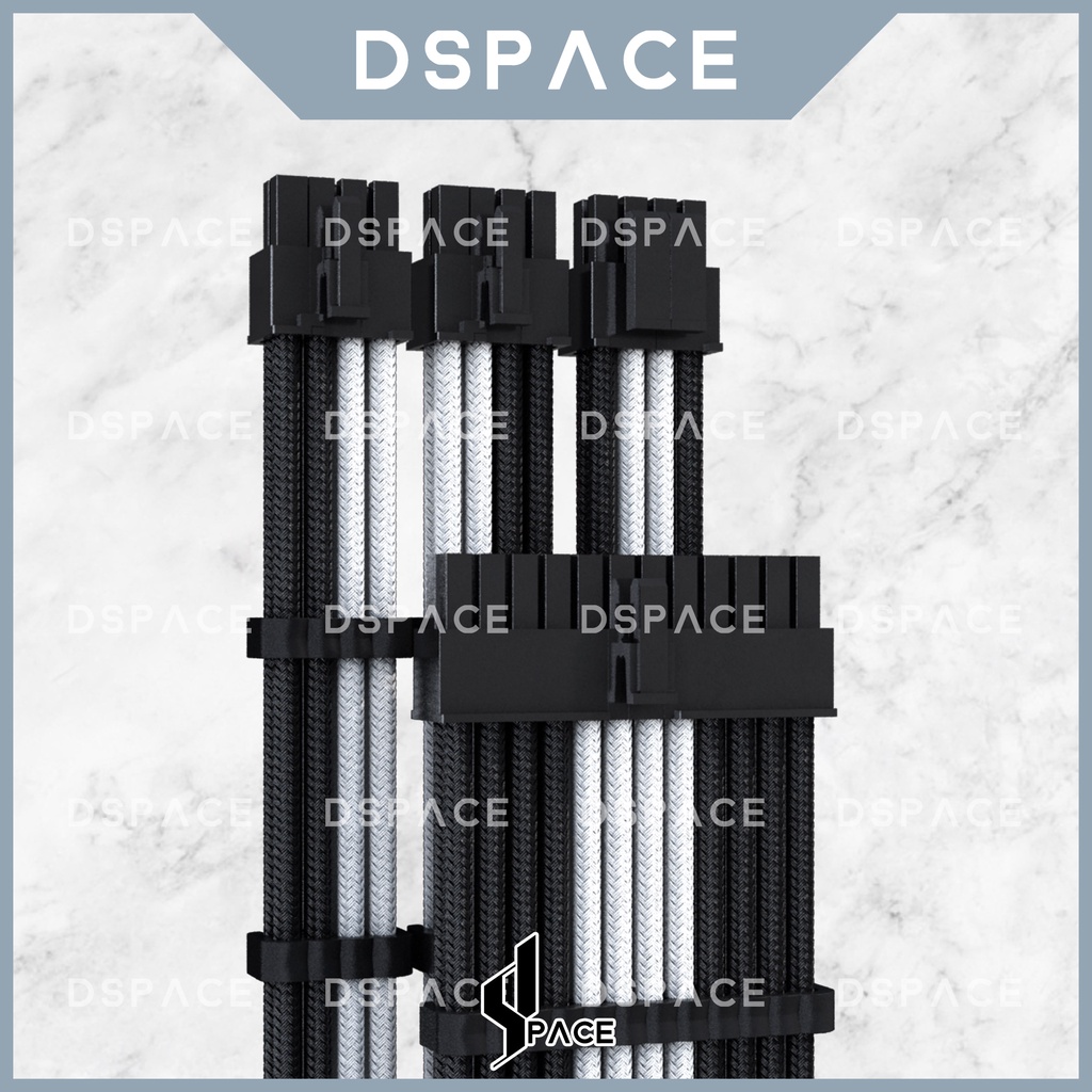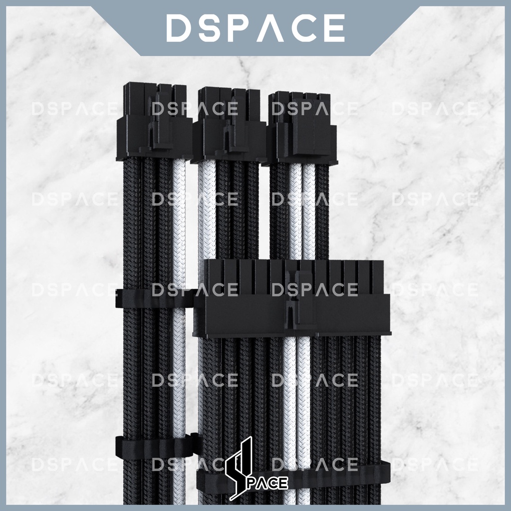 DSPACE MESH-X PSU Black White Premium Sleeve Braided Extension Custom Cable for PC Motherboard Cablemod Aigo Slev.30