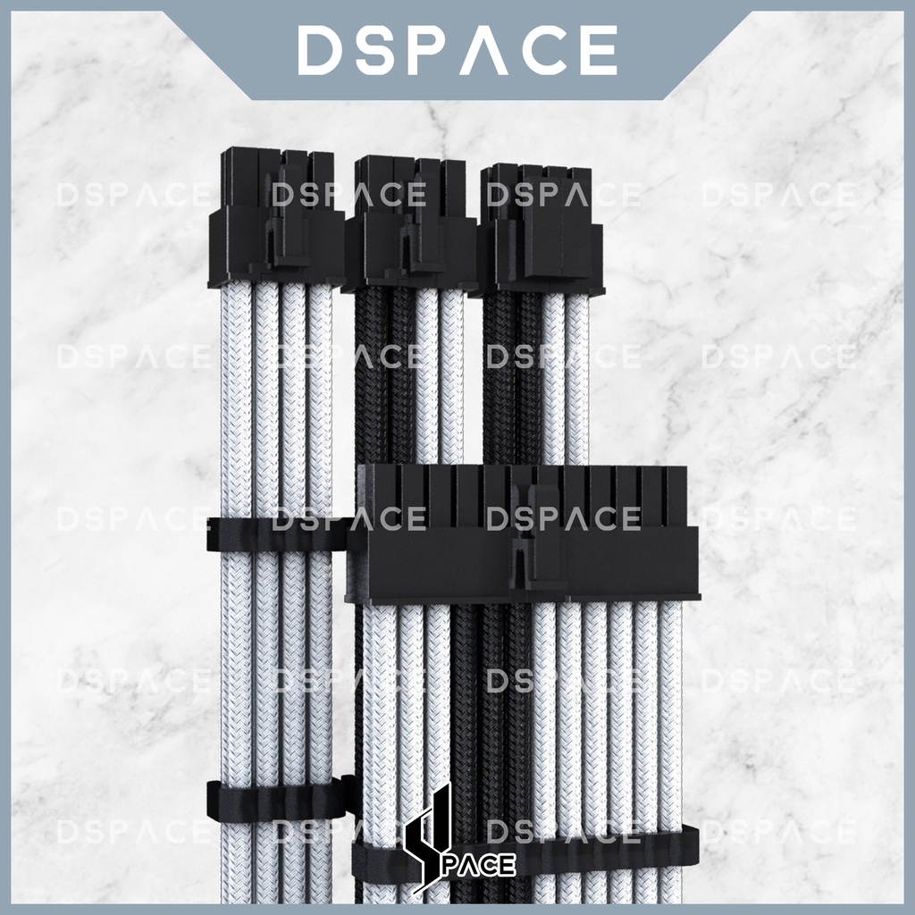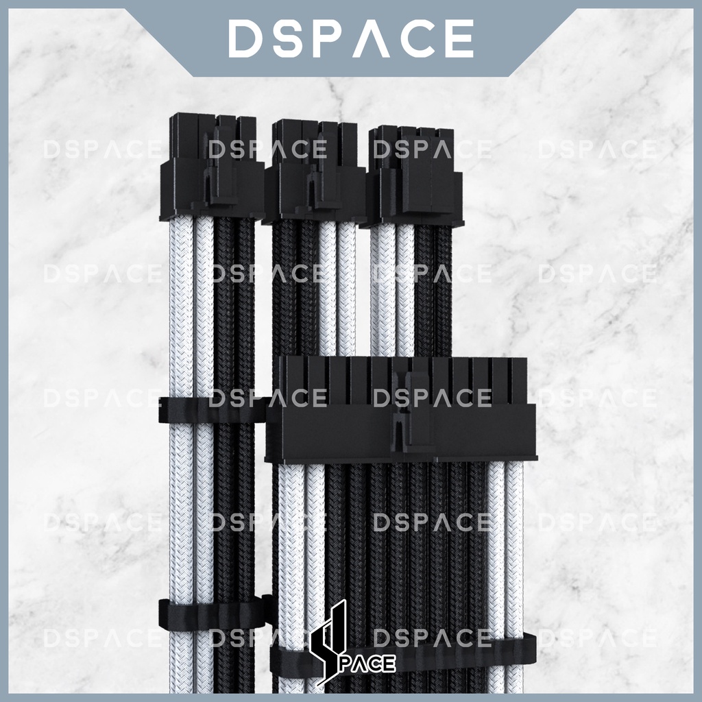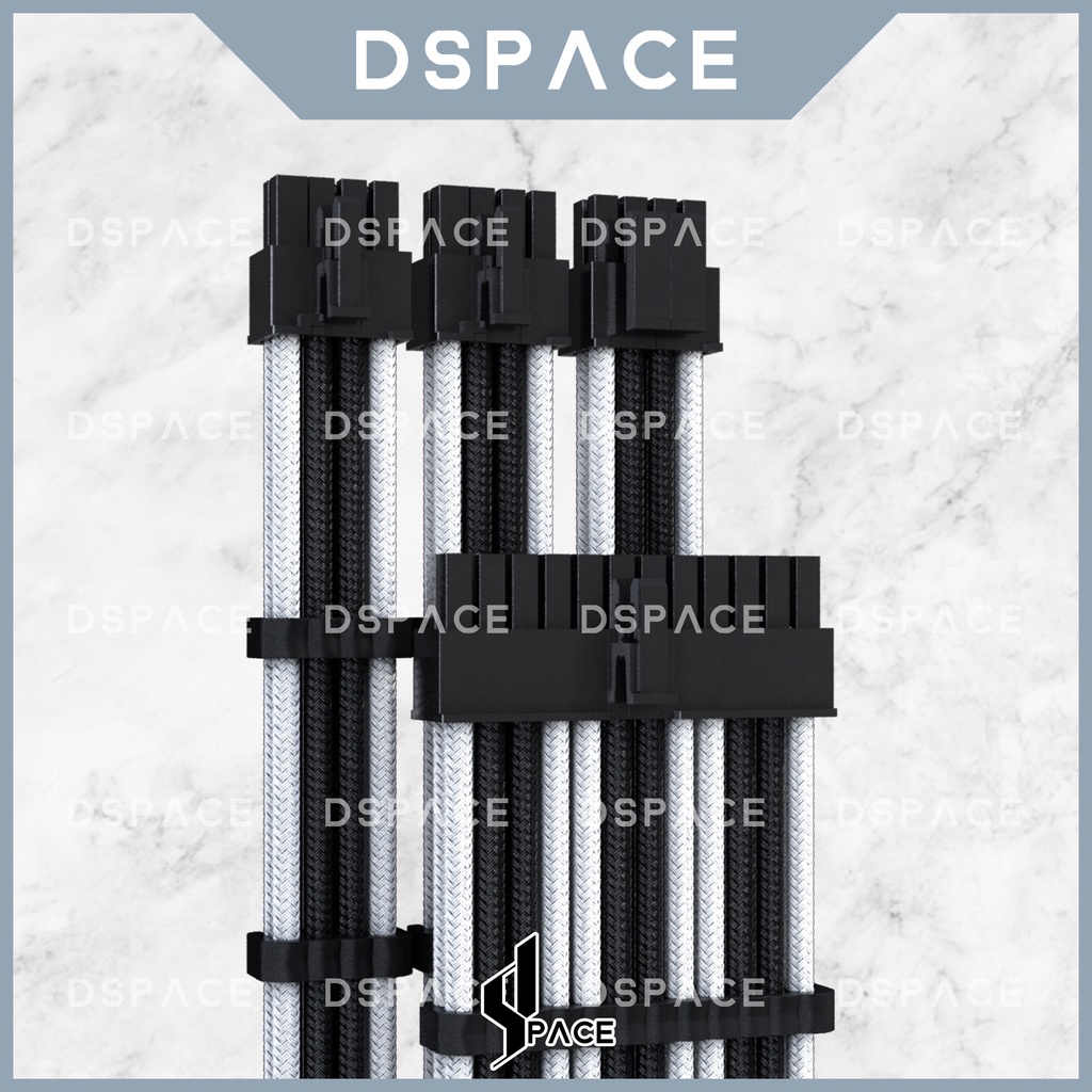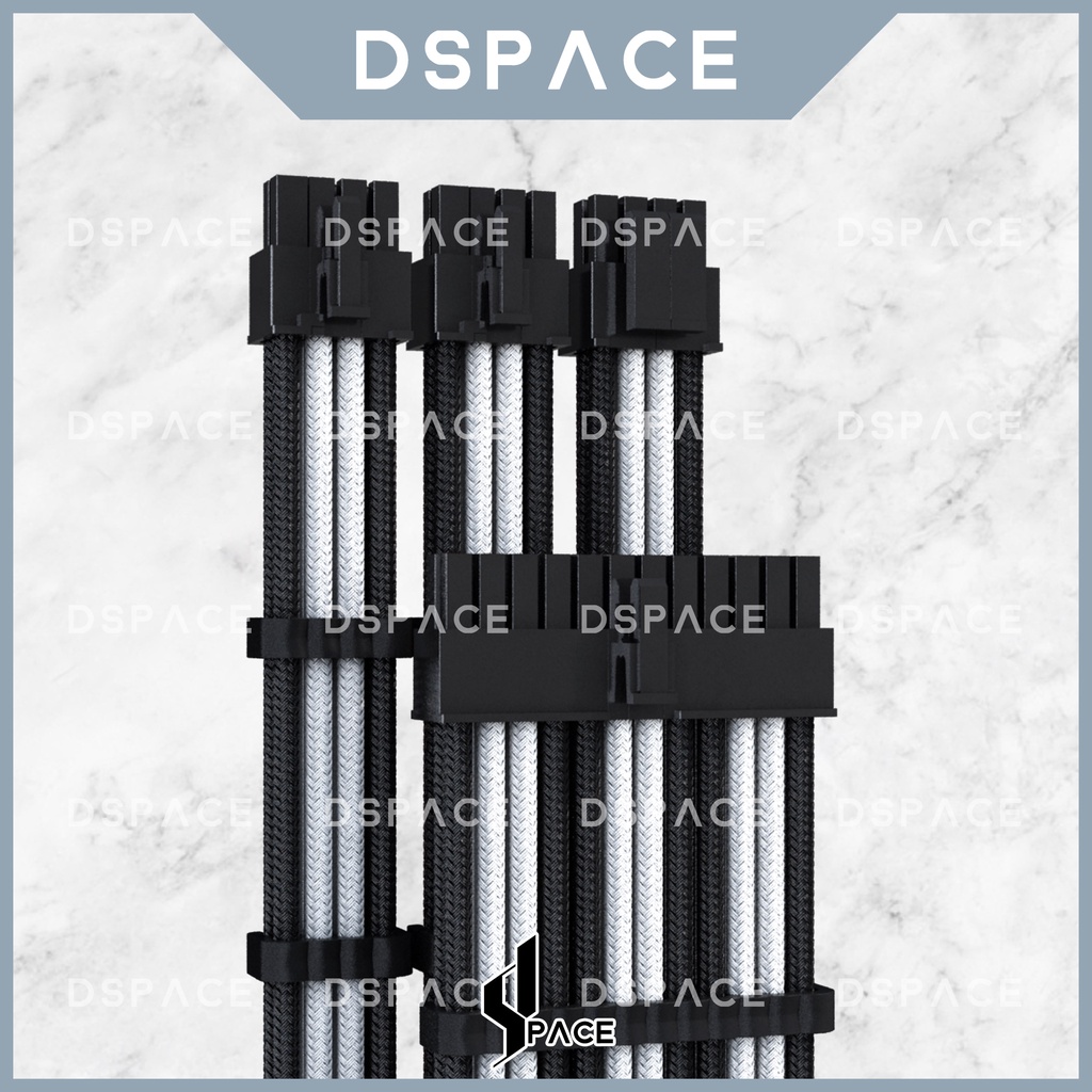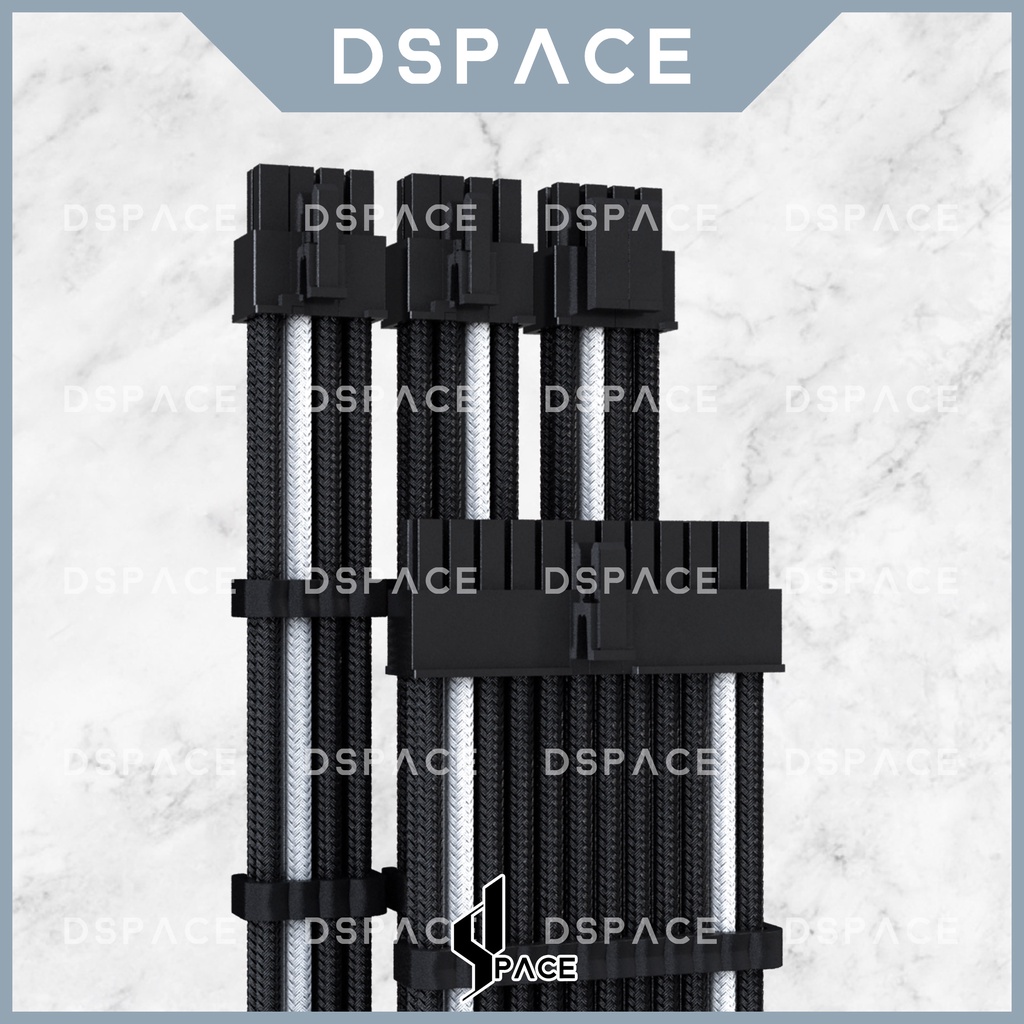 DSPACE MESH-X PSU Black White Premium Sleeve Braided Extension Custom Cable for PC Motherboard Cablemod Aigo Slev.30