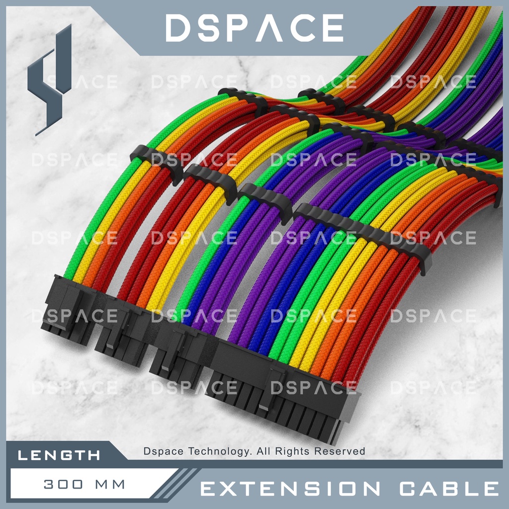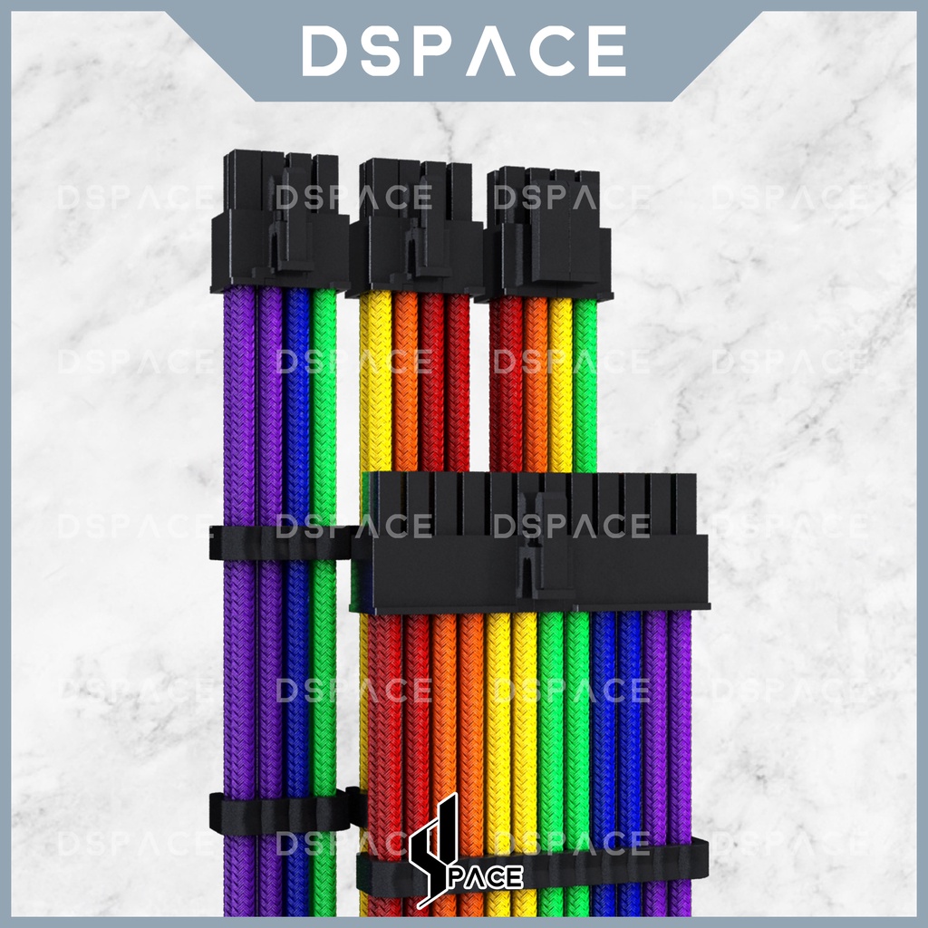 DSPACE MESH-X PSU Rainbow Premium Sleeve Braided Extension Custom Sleeved Cable with Comb for Gaming PC Motherboard Aigo
