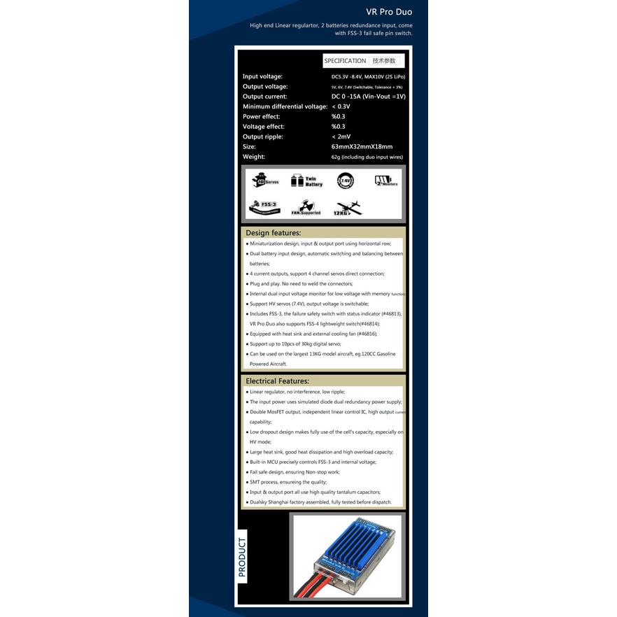 DUALSKY VR Pro DUO High current linear regulators For 100CC RC Airplane Model