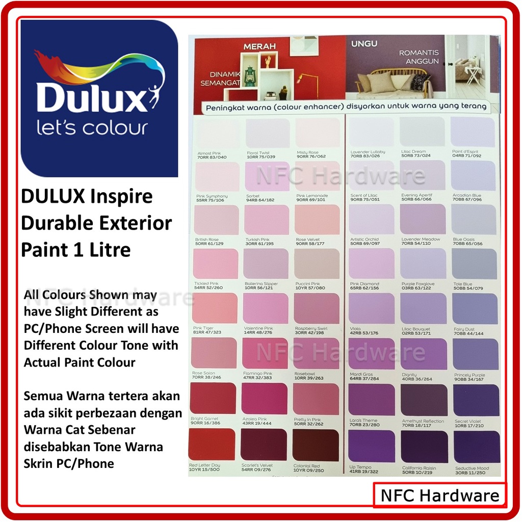 DULUX Inspire Durable Exterior Paint 1 Litre (Cat Dinding Luaran)