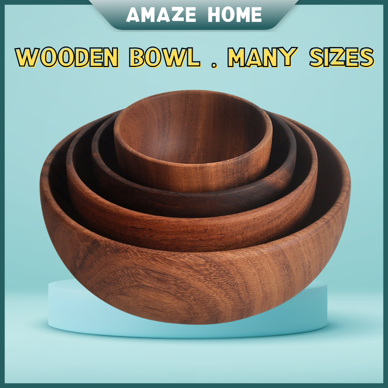 AMAZEHOME Wooden Bowl Soup Bowl Rice Bowl Salad Bowl Mangkuk Kayu 木碗木餐具