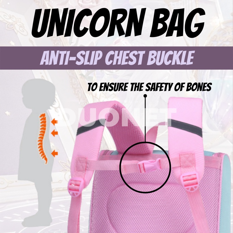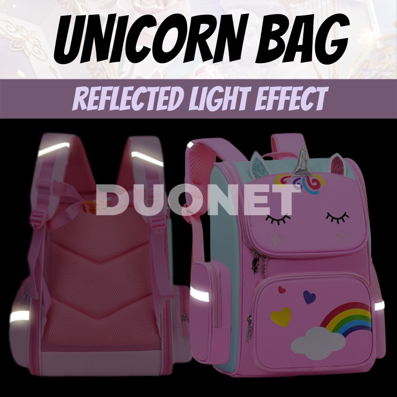 DUONET Unicorn Pony Kids School Bag Large Capacity Primary Student School Backpack Beg Sekolah Kuda Rainbow