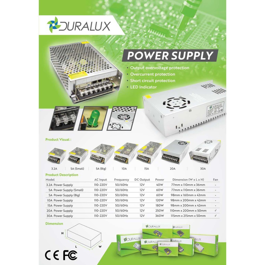 DURALUX POWER SUPPLY-ALARM, CCTV AND LED 12V 3.2A,5A,10A,15A,20A,30A