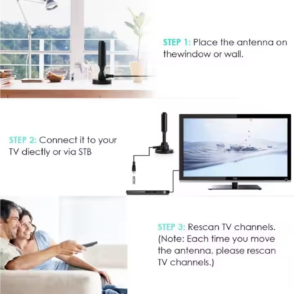 DVB-T2 Magnetic Aerial TV Antenna Signal Amplifier Receiver Booster HDTV DTTV Digital TV Indoor UHF VHF / Arial TV