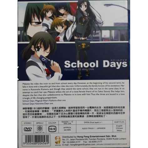 DVD Anime School Days ( TV 1-12 End + OVA ) Complete Box Set English Subtitle
