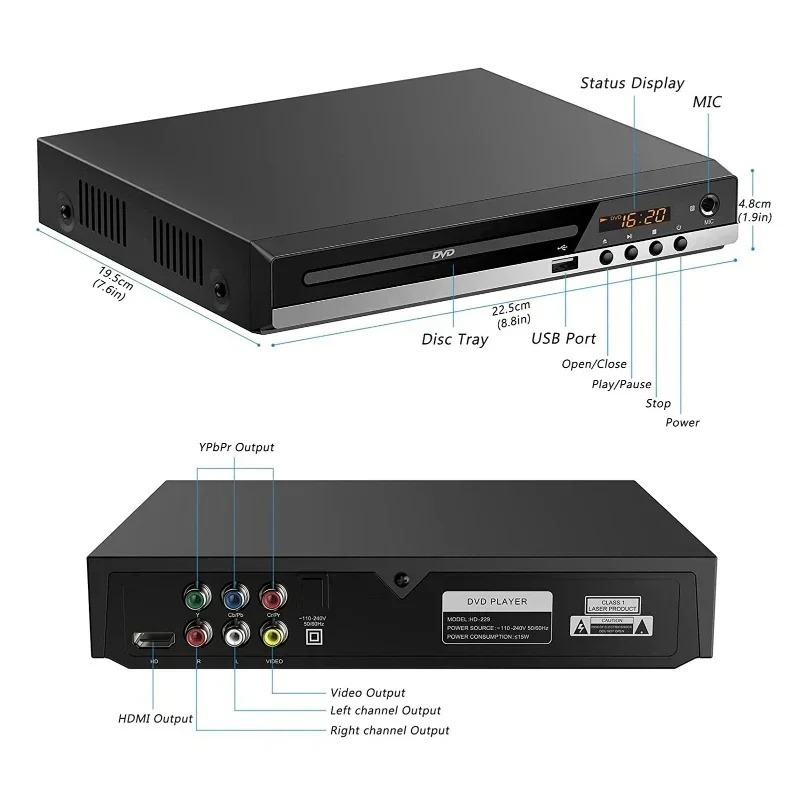 DVD Player 110V-240V USB Multiple Playback ADH Multifunctional Player With HDMI-compatible Output Audio Video with Romote Control