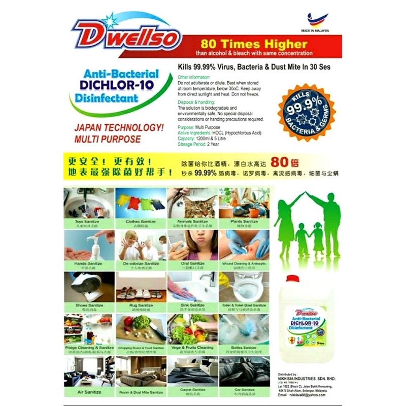 DWELLSO Dichlor-10 (5L) Anti- Bacteria Dichlor-10 disinfectant Ubat Nano Gun KKM Approved