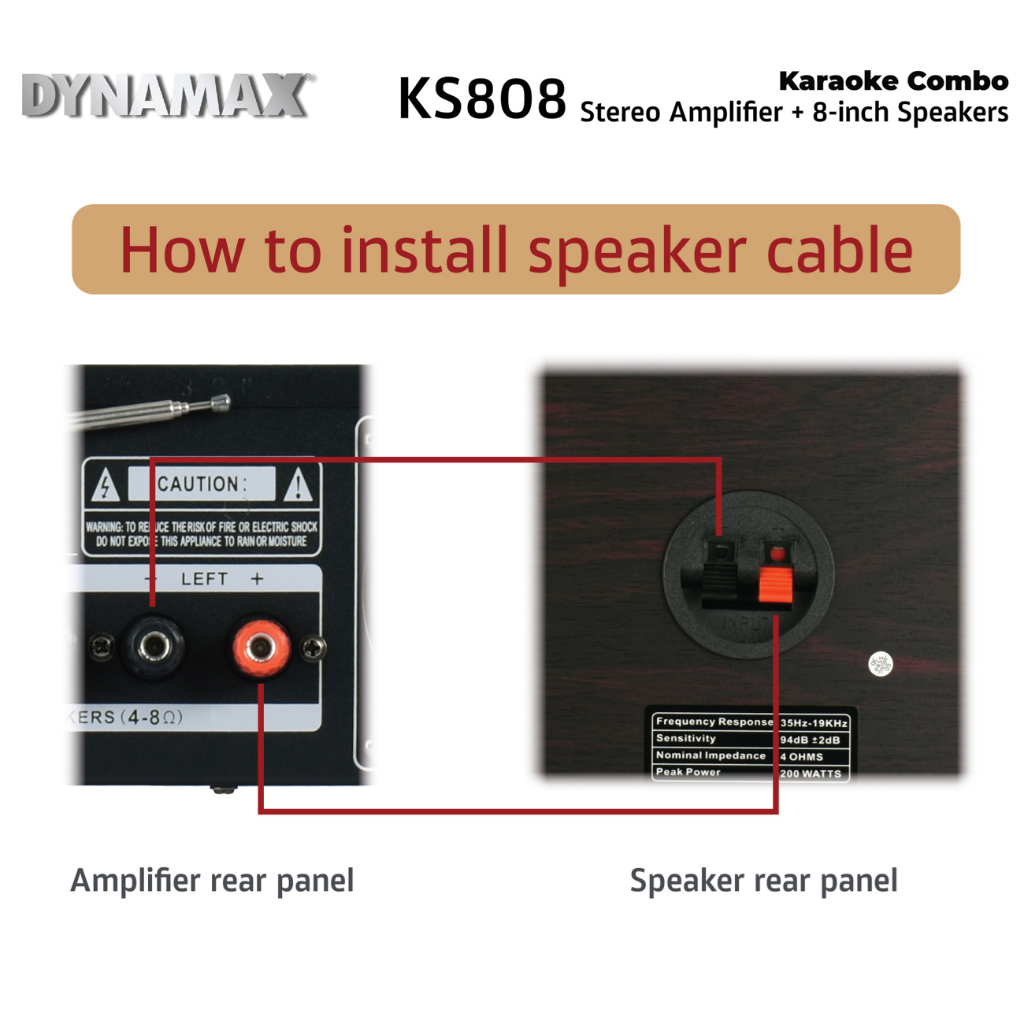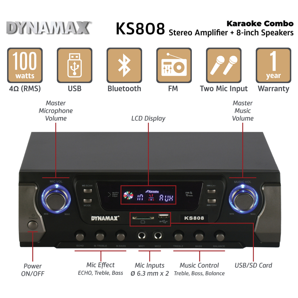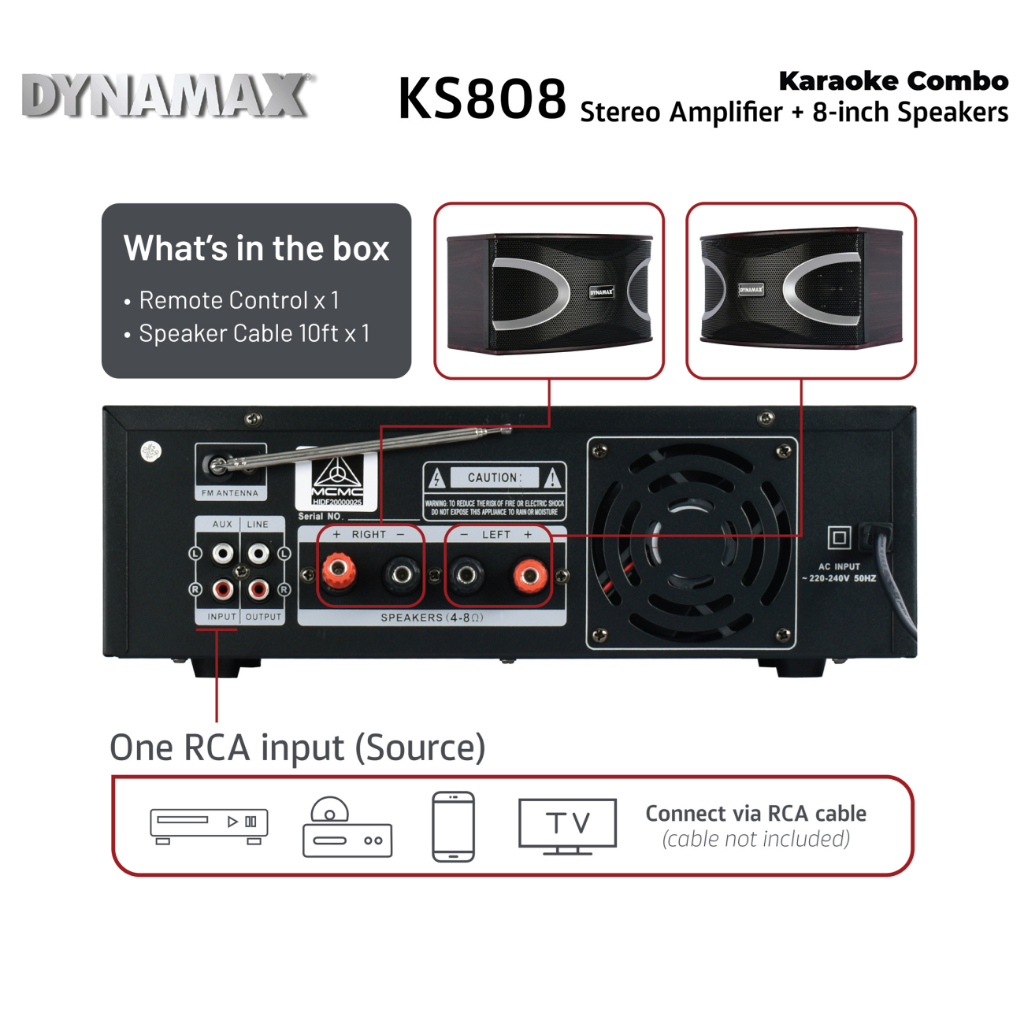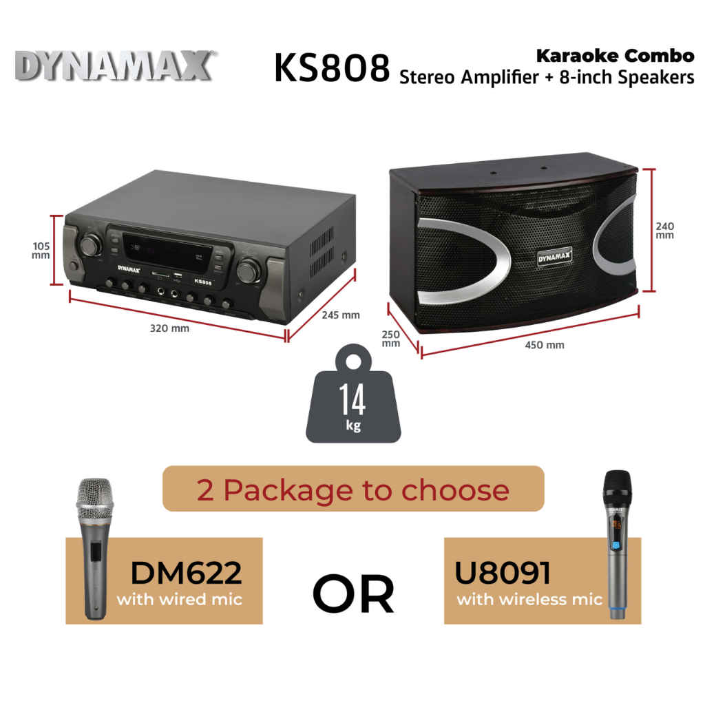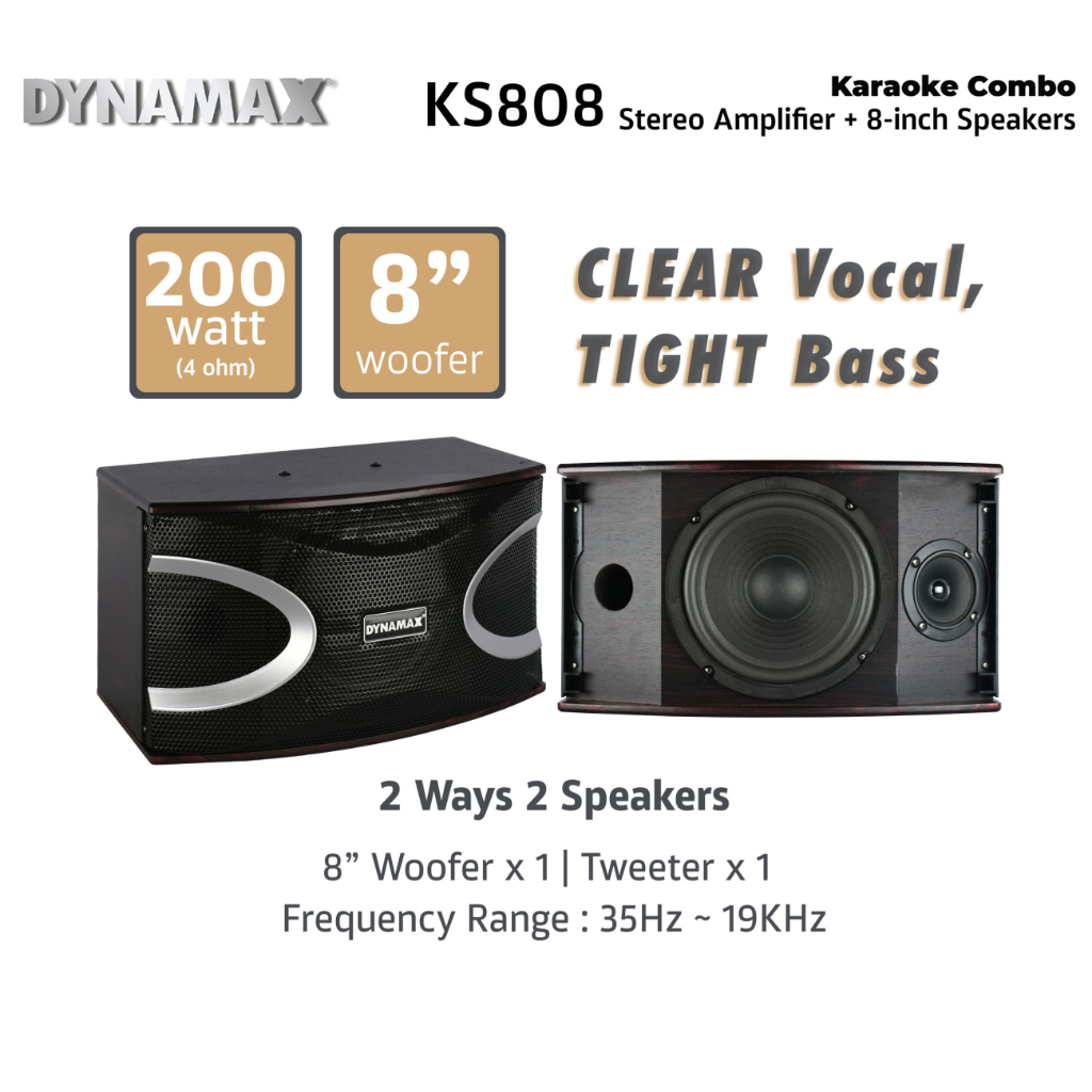 DYNAMAX KS808 Home Karaoke Set Karaoke System 8 inch Karaoke Speakers , Amplifier, 1 pc Microphone , Speaker Cable