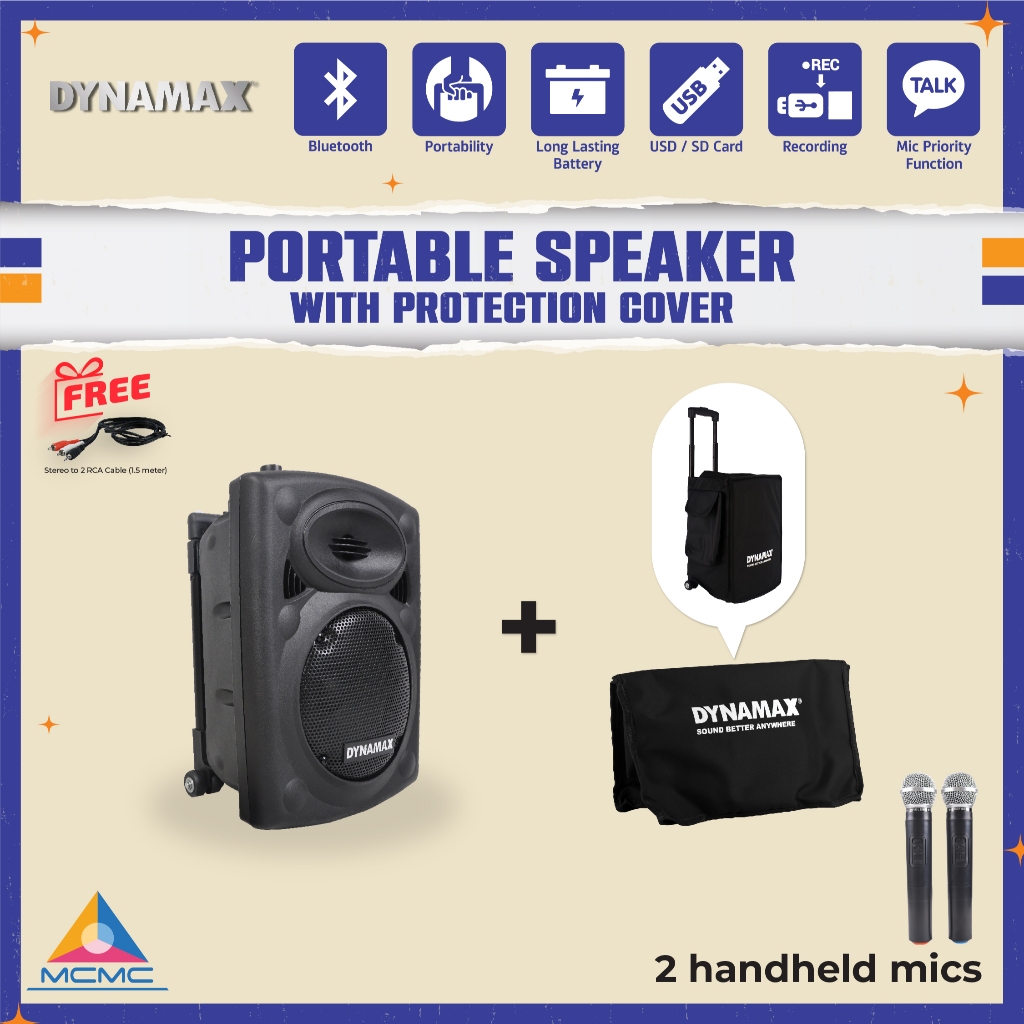 DYNAMAX PRO110 /PRO101 10" Bluetooth Portable PA System Portable Speaker Active Speaker with Wireless Mic With Spk Stand