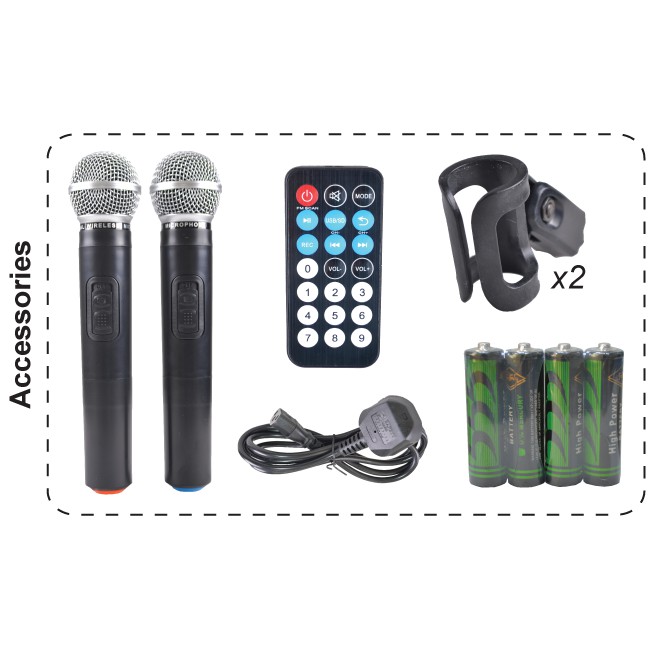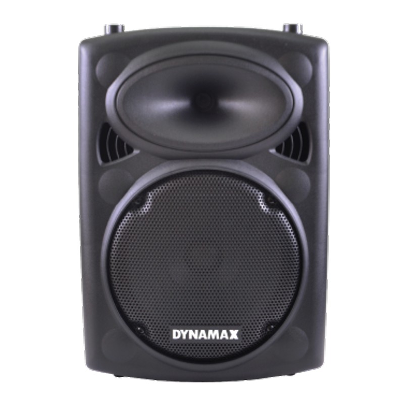 DYNAMAX PRO801A 8 INCH PORTABLE SPEAKER WITH DUAL WIRELESS HANDHELD MICROPHONE * LIMITED PROMOTION WITH SPEAKER STAND *