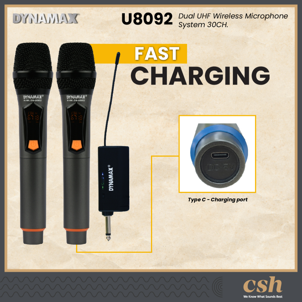 DYNAMAX U8092 Dual UHF Wireless Handheld Microphone or Bodypack Headset Microphone Mikrofon Rechargeable Receiver
