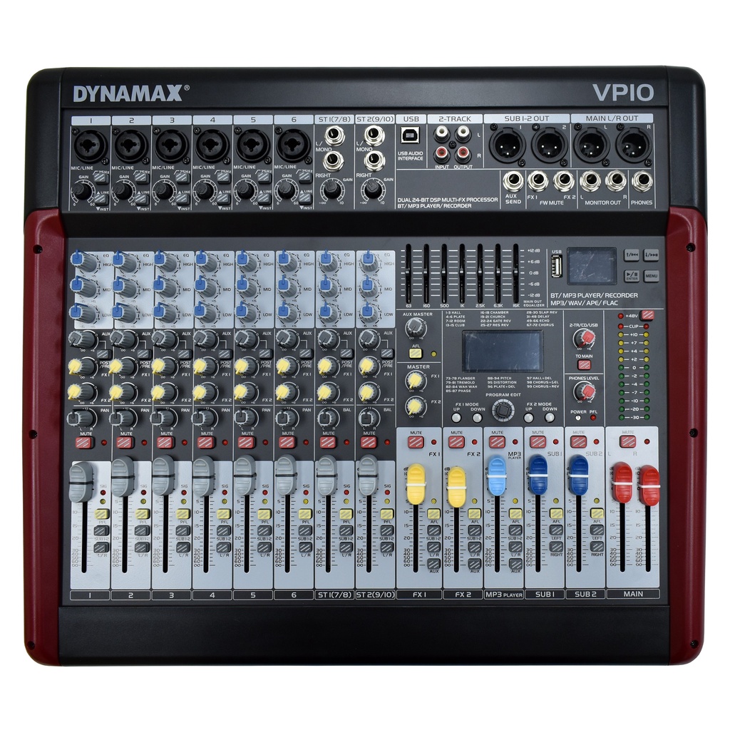 DYNAMAX VP10 10 channel (6 mono + 2 stereo) Mixer with Bluetooth | USB | DSP effect processor