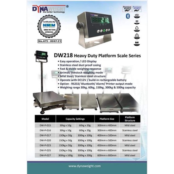 DYNAWEIGHT < SIRIM APPROVAL >150kg / 300kg Timbang Electronic Platform Scale DW-218 [ HQ2100128 ]
