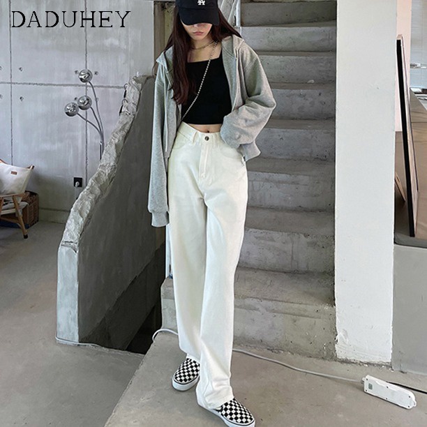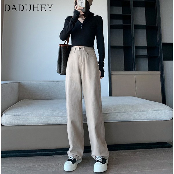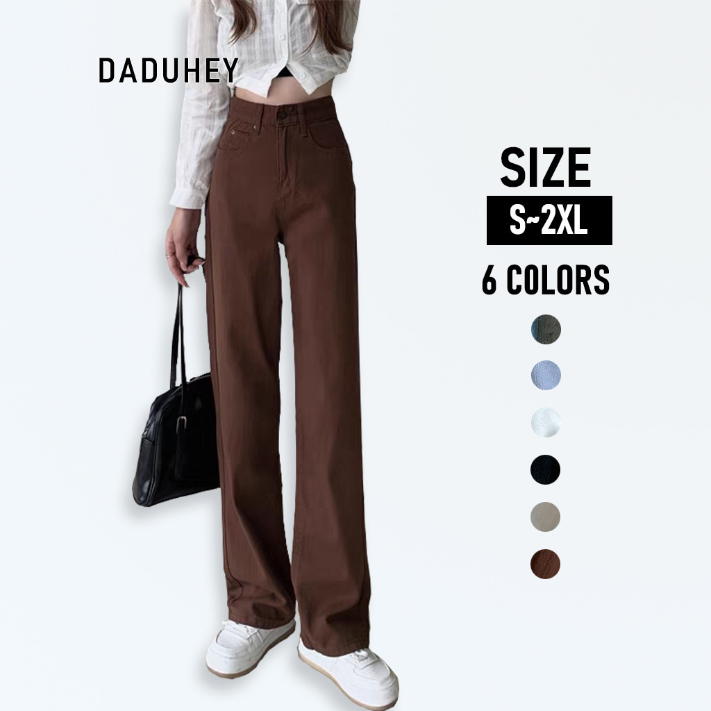 Daduhey baju raya 2024 High-Waist Jeans Retro Wide-Leg Jeans Drooping Straight Jeans Pants
