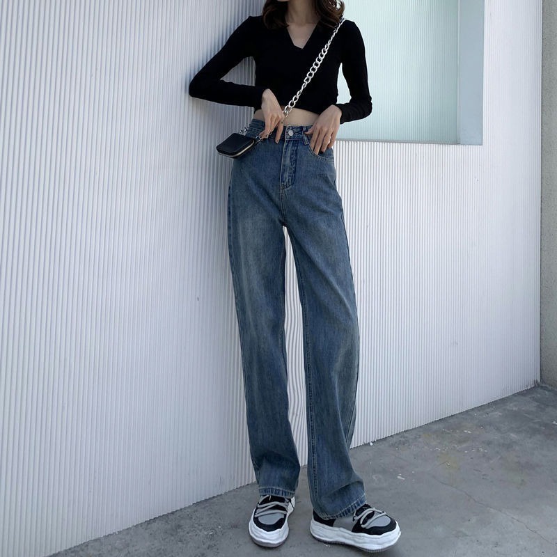 Daduhey baju raya 2024 Women's Straight Wide-Leg High-Waist Jeans - 9 Colours [Free Belt]