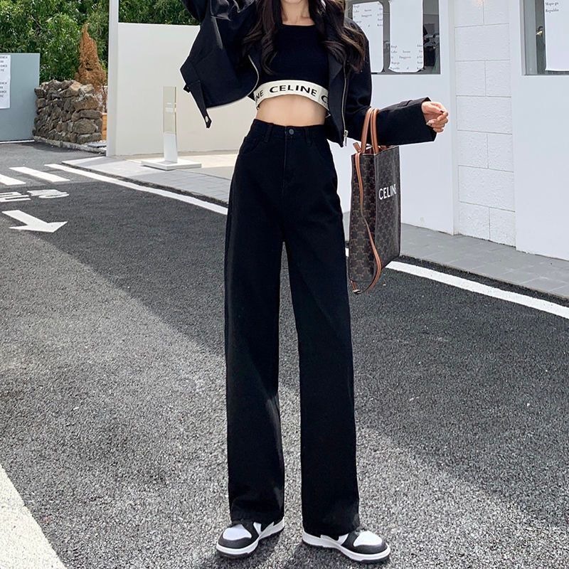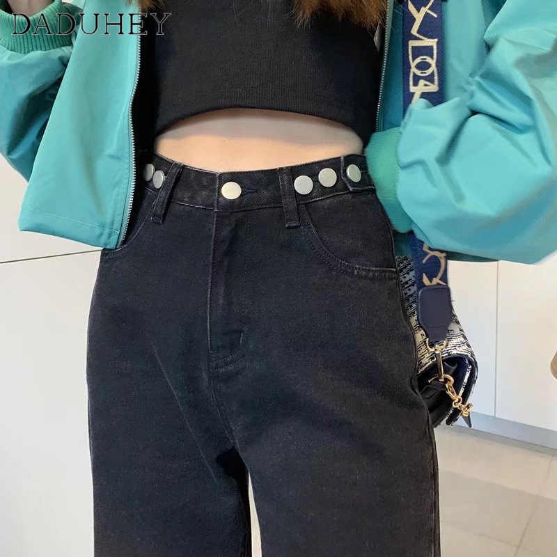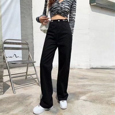 Daduhey baju raya perempuan Women's Summer High-Waist Straight and Wide-Leg Mop Jeans - Light Blue