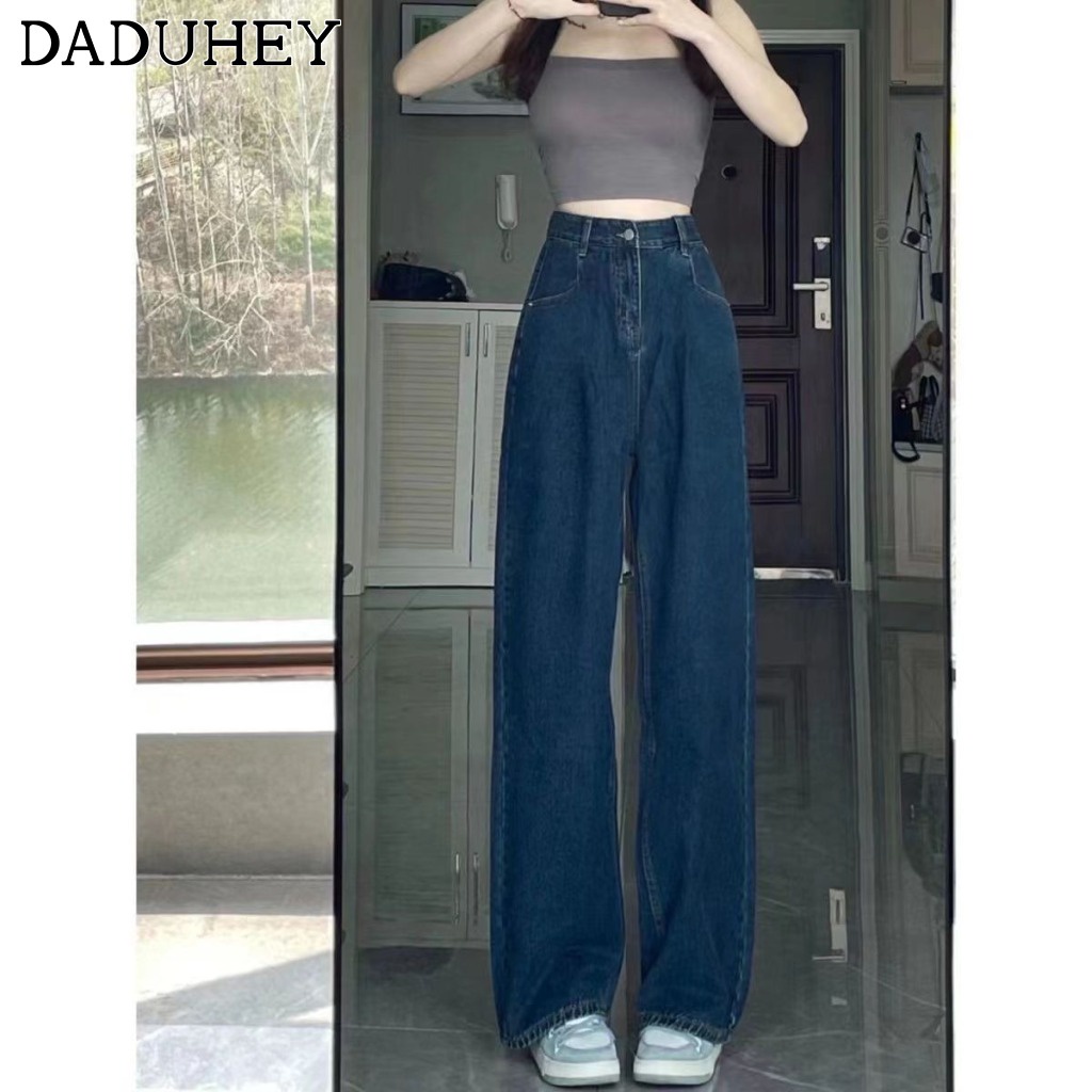 Daduhey baju raya 2024 Denim Wide-Leg High-Waist Mopping Straight Long Jeans Pants