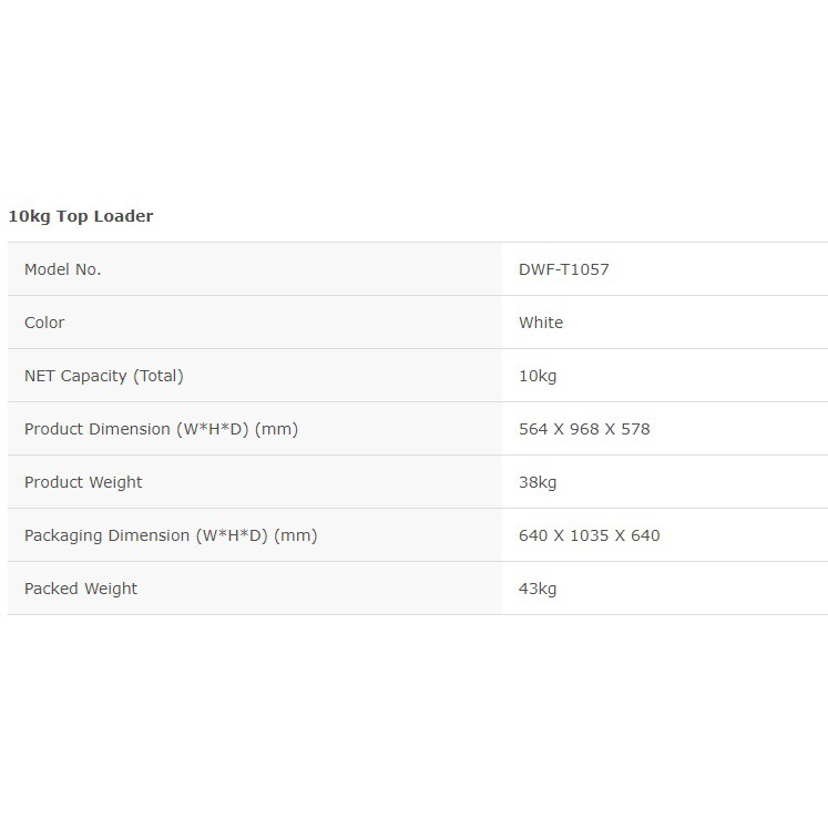 Daewoo DWF-T1057 10.0kg Top Load Fully Auto Washing Machine
