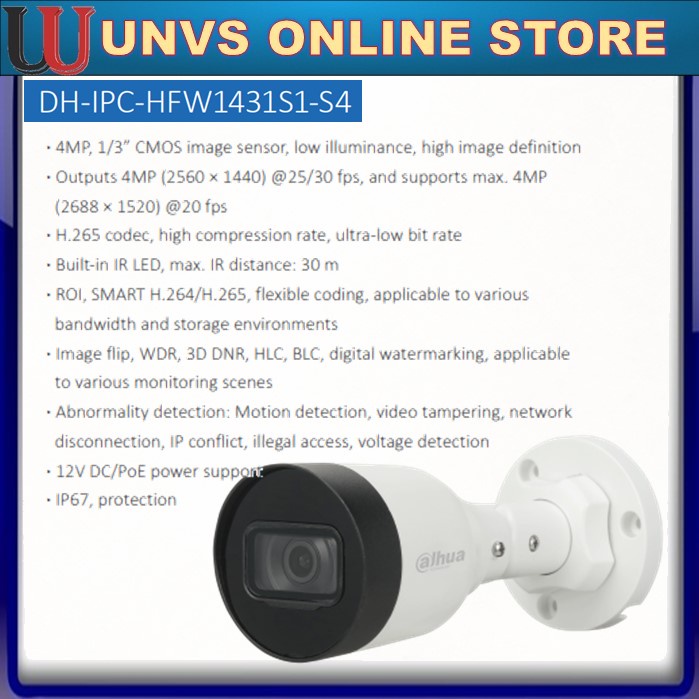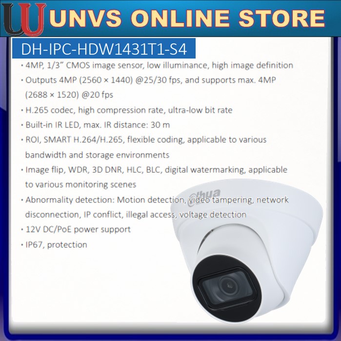 Dahua 4MP IP POE CAMERA DOME IPPOE NETWORK FULL HD DIGITAL DH-IPC-HDW1431T1-S4/DH-IPC-HFW1431T1-S4(DOME/BULLET)