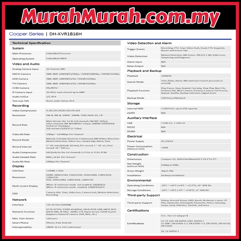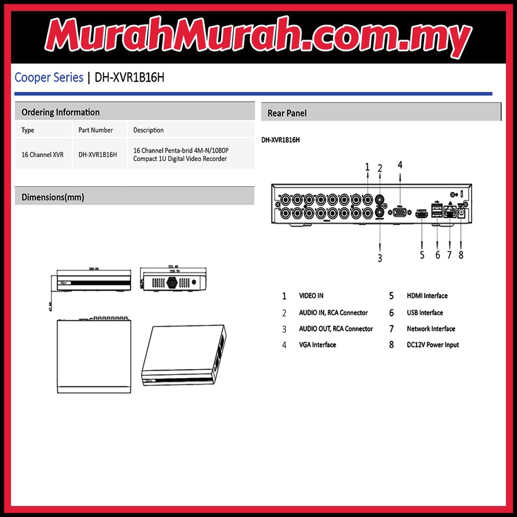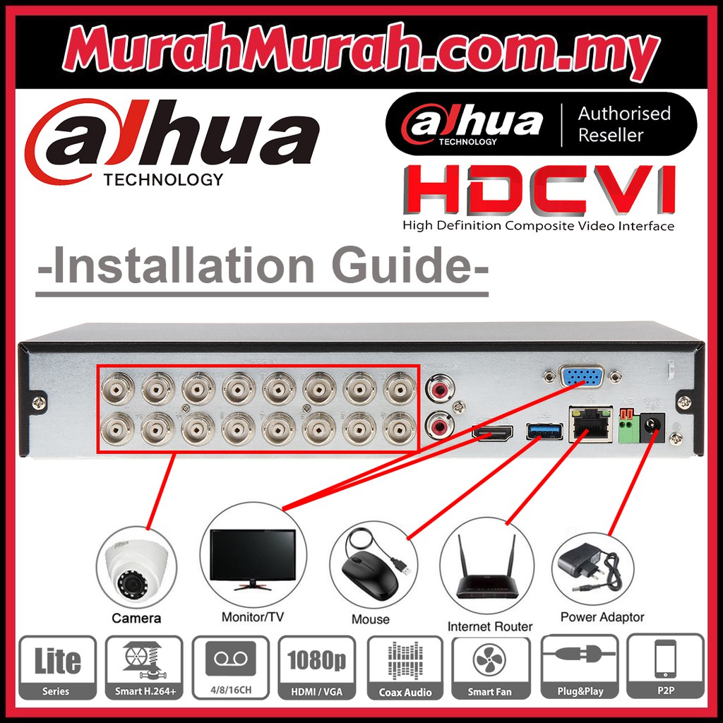 Dahua 5.0MP DHI-XVR1B16H-I 16-Channel DVR 16CH Full HD 1080P 5MP recorder CCTV P2P connect phone android iphone