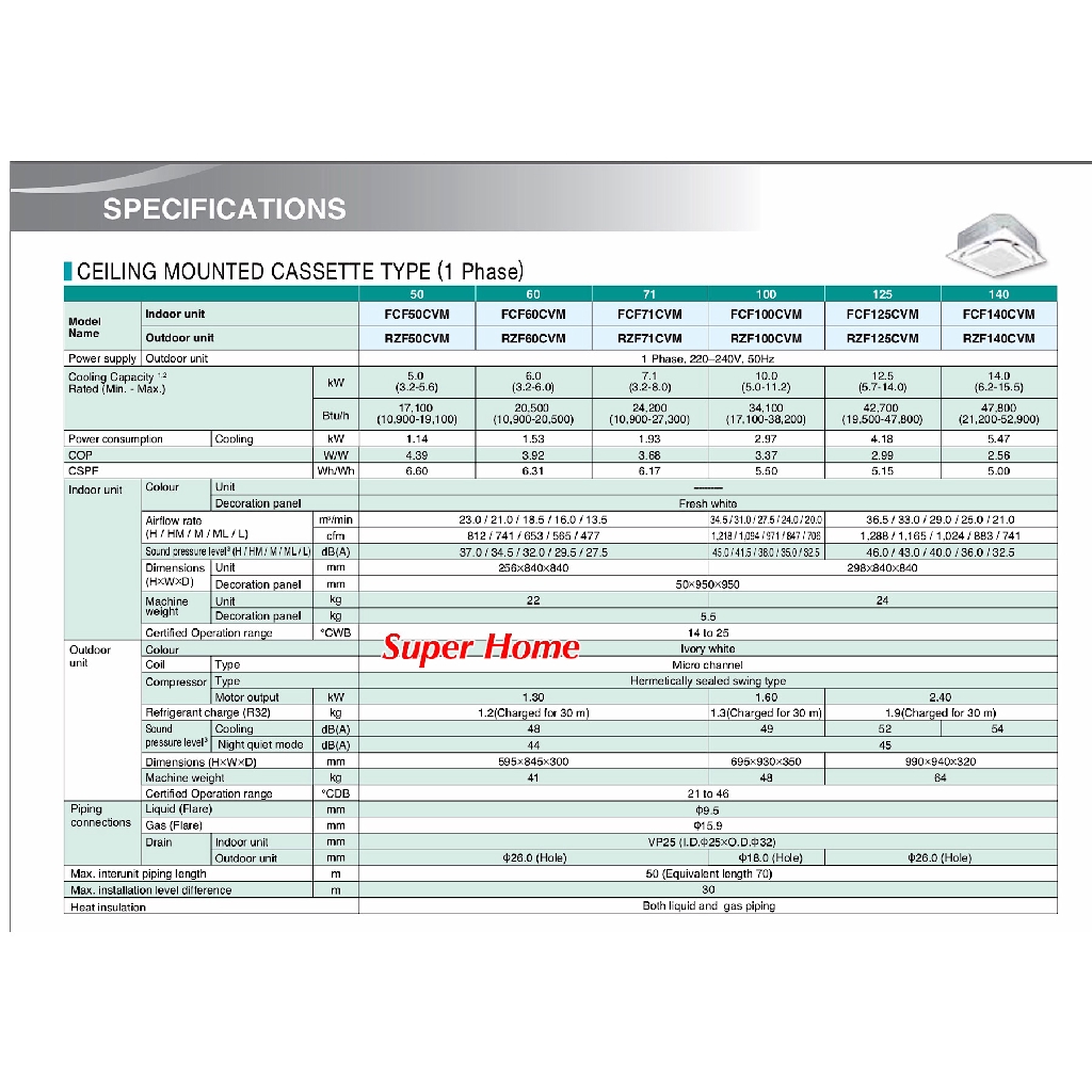 Daikin 3.0hp Inverter Ceiling Cassette Type Air Conditioner FCF71C & RZF71CVM (Panel BYCQ125EAF)