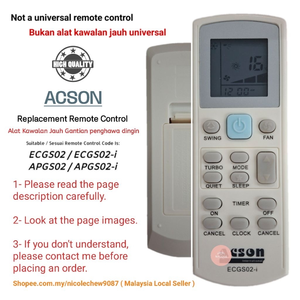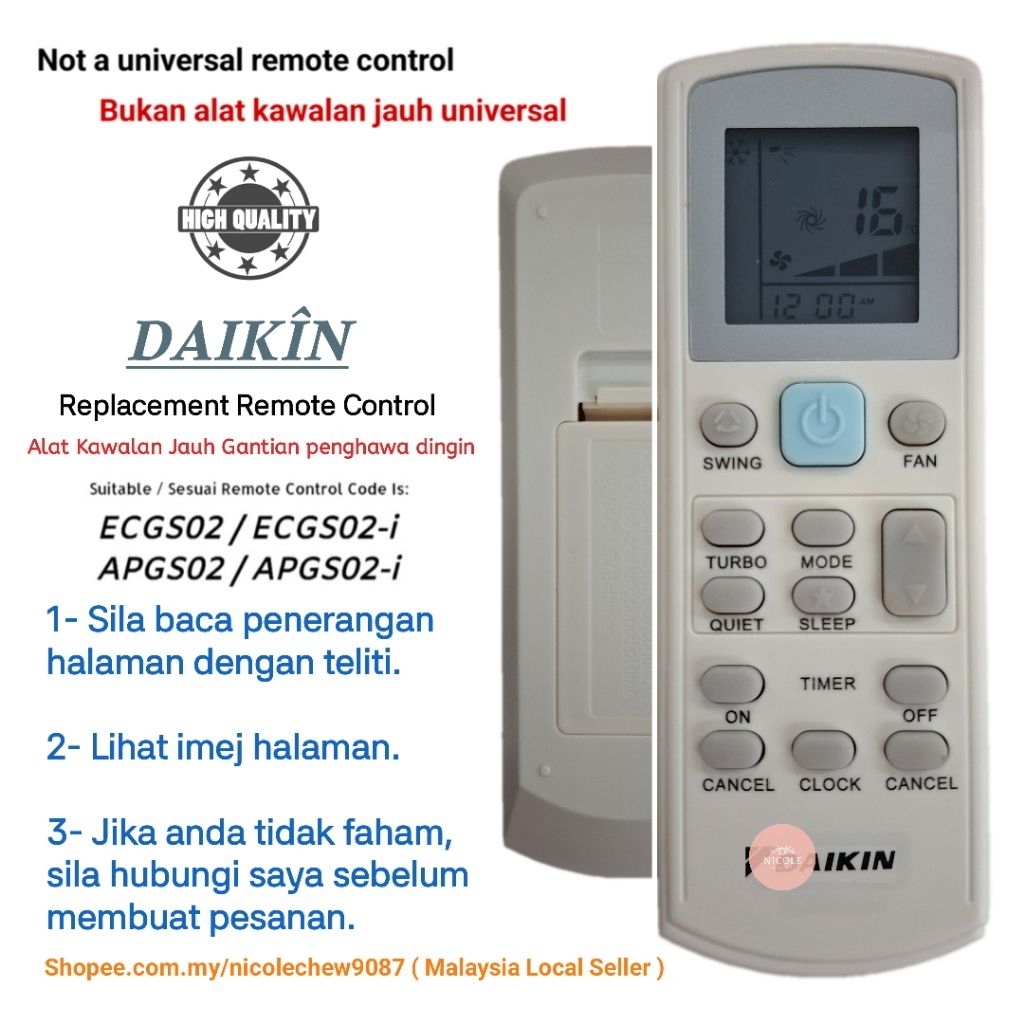 Daikin Acson Air Cond Air Conditioner Replacement Remote Control APGS02-i/ECGS02-i