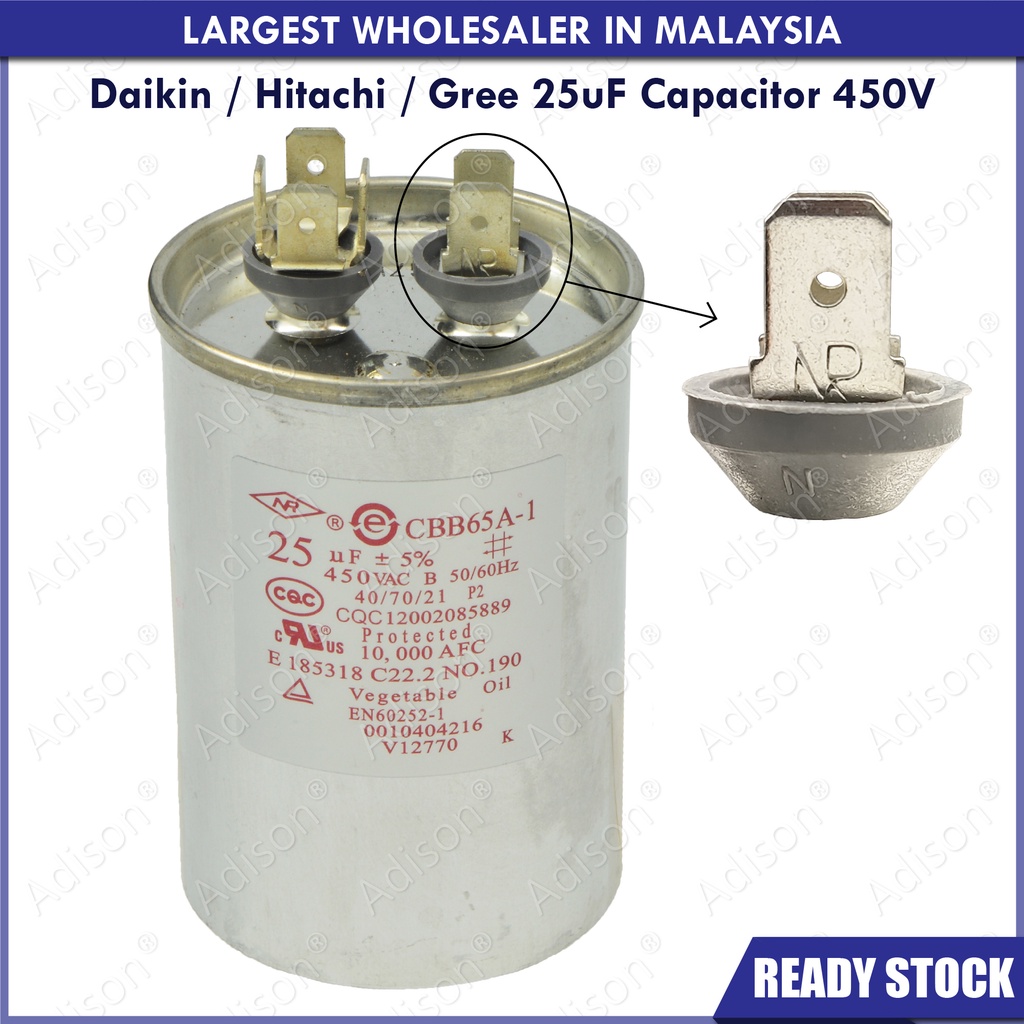 Daikin / Hitachi / Gree Air Conditioner Capacitor 25uF 450V