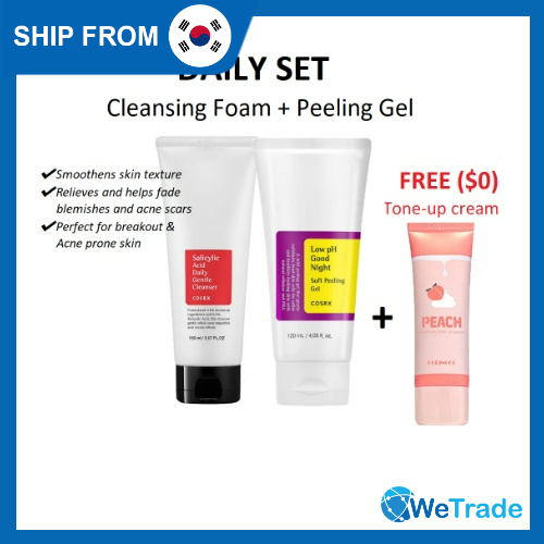 Daily Skincare Set Cleansing Foam & Peeling Geel COSRX plus CORINGCO peach whipping tone up cream (free) from Korea