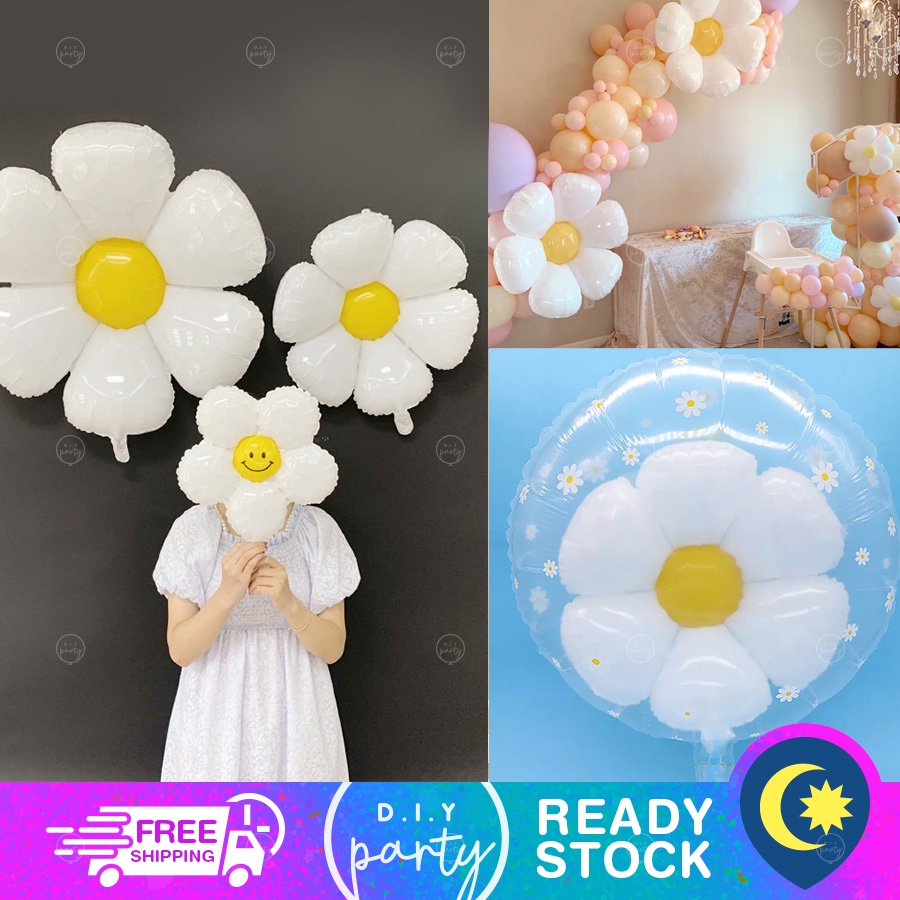Daisy Flower Balloon Belon White Yellow Cute Girl Birthday Party Decor Hand Outdoor Photo Props Foil Korean Pink Purple