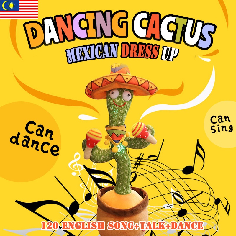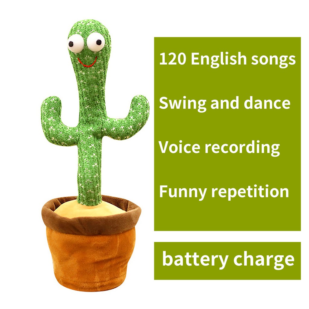Dancing Cactus Toy Electronic Plush Cactus Toy Singing Talking Repeating Dancing Recording LED Christmas Gift