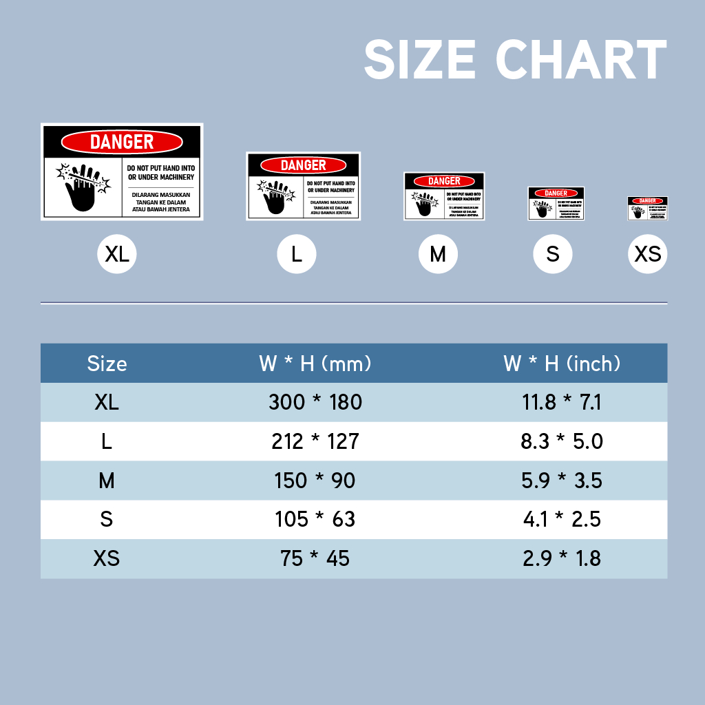 Danger Bahaya Caution. Machine Cut Fingers Sticker. Do Not Put Hand into Machinery. Dilarang Masuk Jari Tangan Jentera.