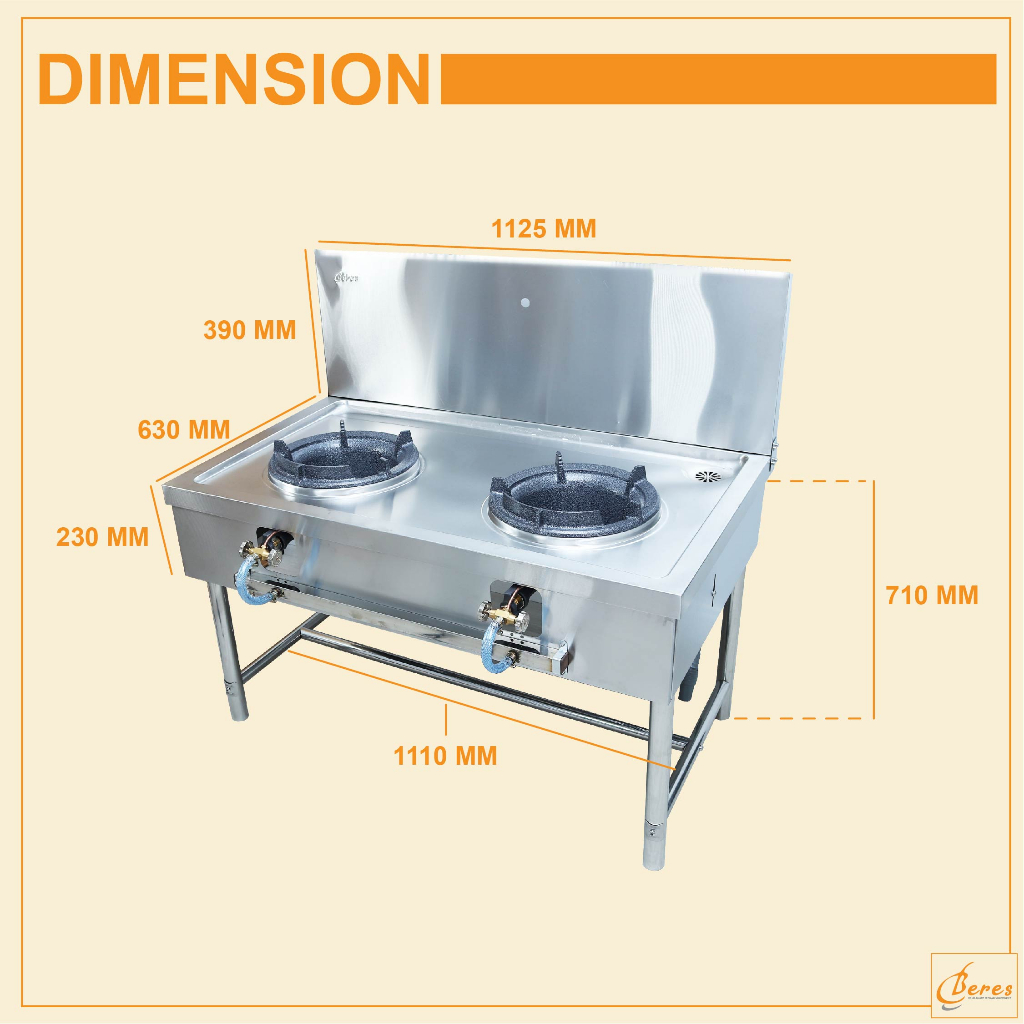 Dapur Gas Masak Stainless Steel Kwali Range 2 Burner High Pressure Dapur Gas 2 Tungku Commercial Stove Burner