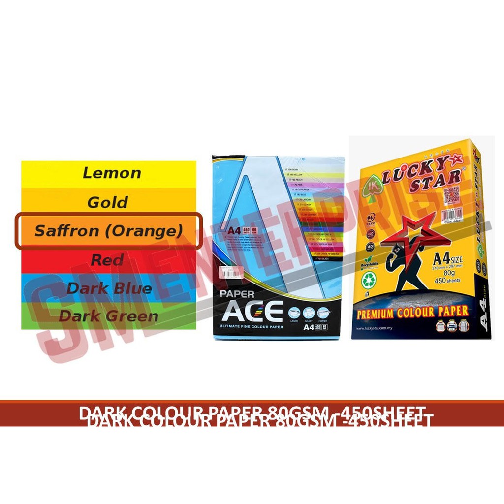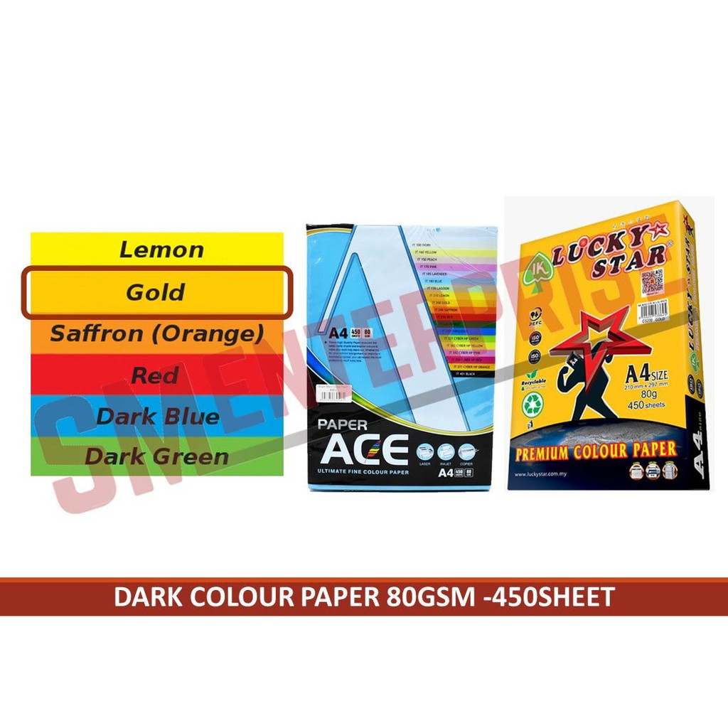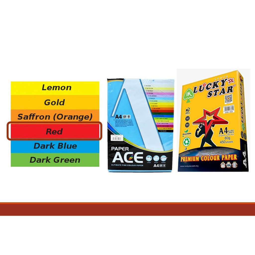 Dark Colour Paper A4 80gsm - 450sheet (Lemon / Gold / Saffron (orange) / Red)