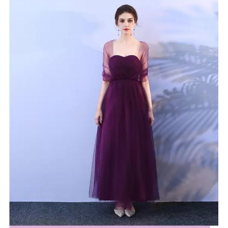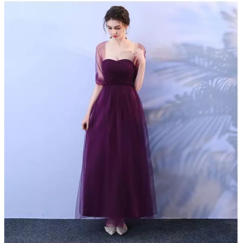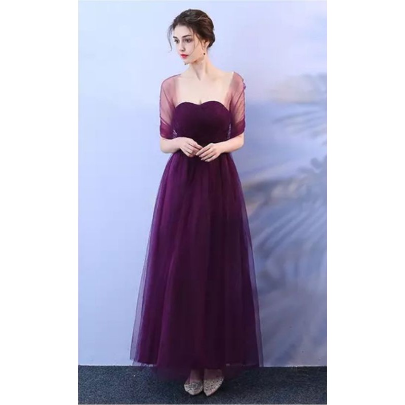 Dark Purple Mesh Long Maxi Bridesmaid Evening Dinner Dress Gown Off Shoulder