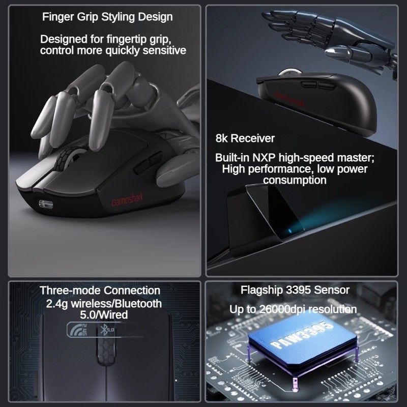 Darmoshark M5 M5Pro Three-mode Connection 2.4g Wireless Bluetooth Ergonomic Finger Mouse 38g Lightweight Small Hand Office Game