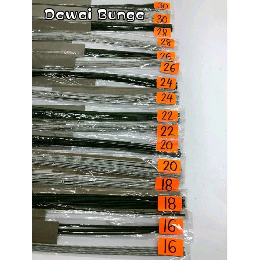 Dawai Bunga Floral Wire Hijau Putih Size 16 ~ 30 1pack