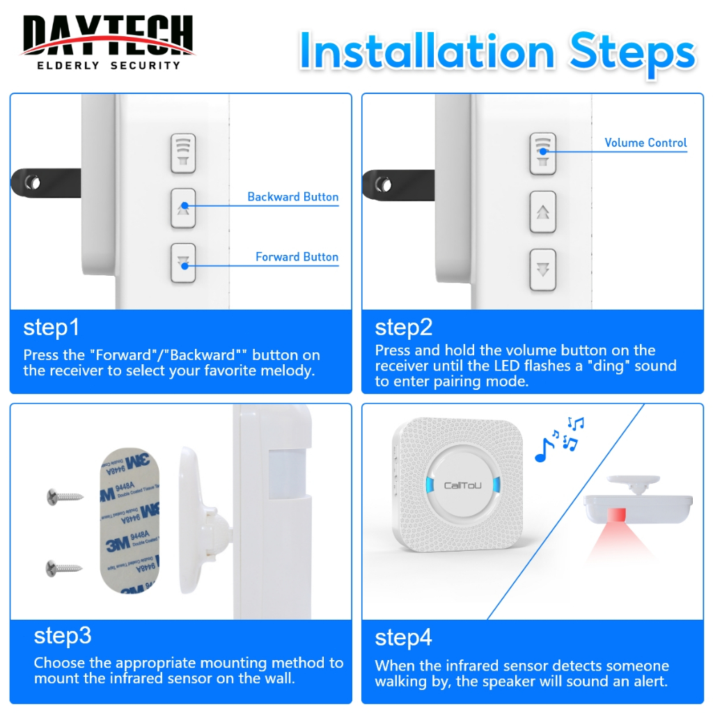 Daytech Infrared sensor wireless door bell Easy to install, loud sound doorsensor SHOP/OFFICE