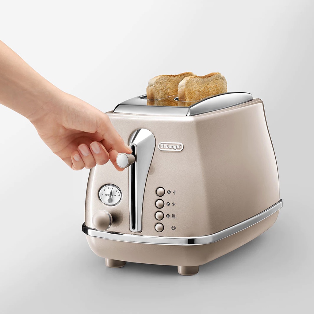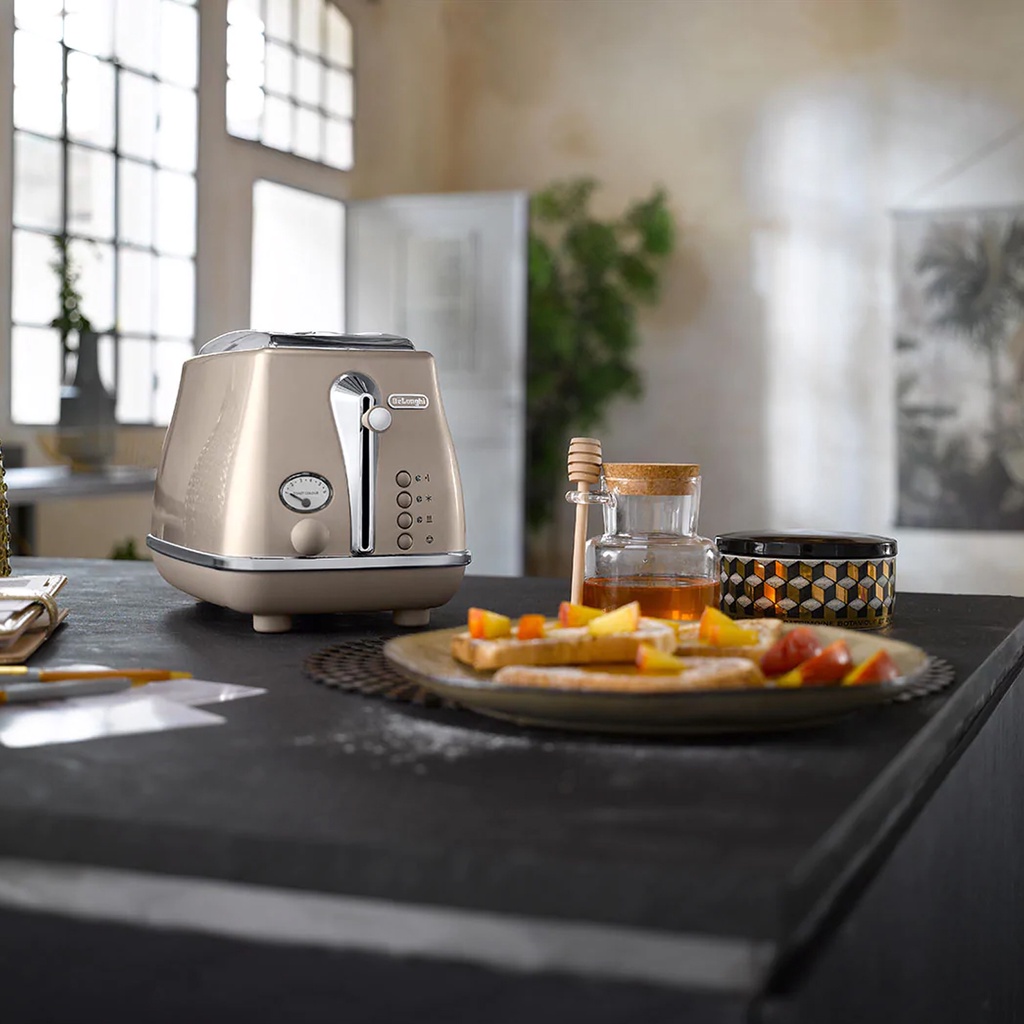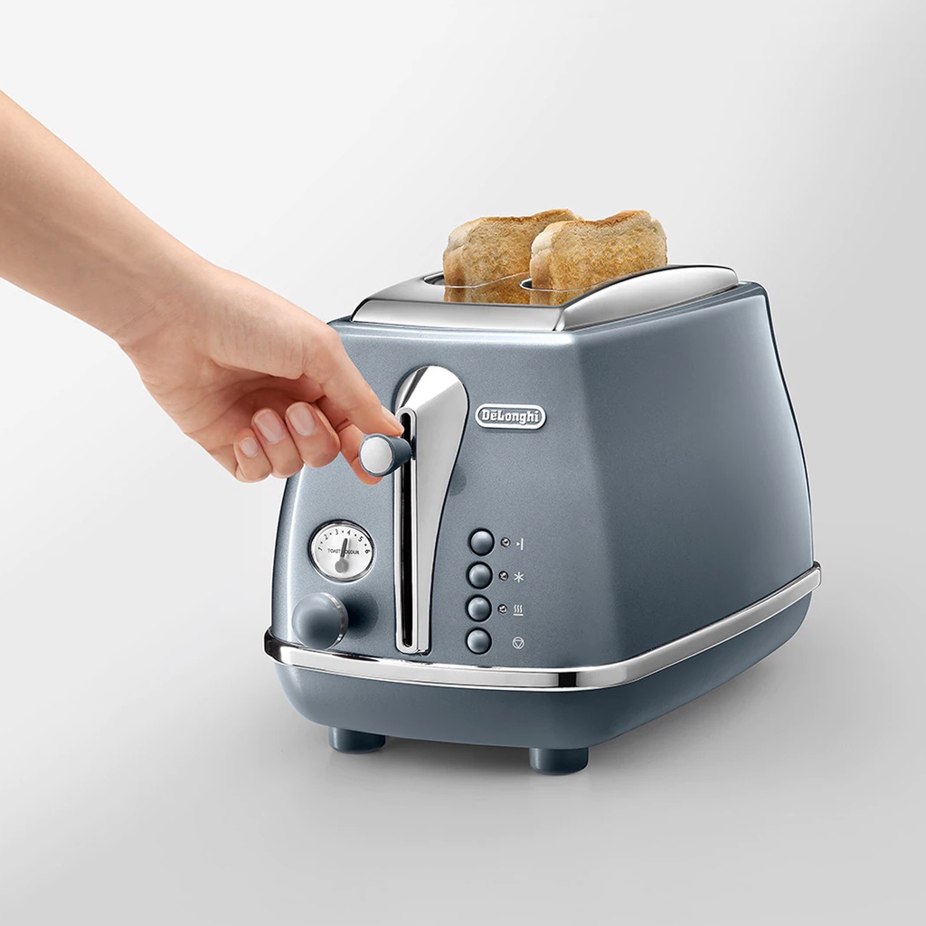 DeLonghi CTOT2003 Icona Metallics Toaster 2 Slices 900W - CTOT2003.AZ Mesmerising Azure / CTOT2003.BG Champagne Beige
