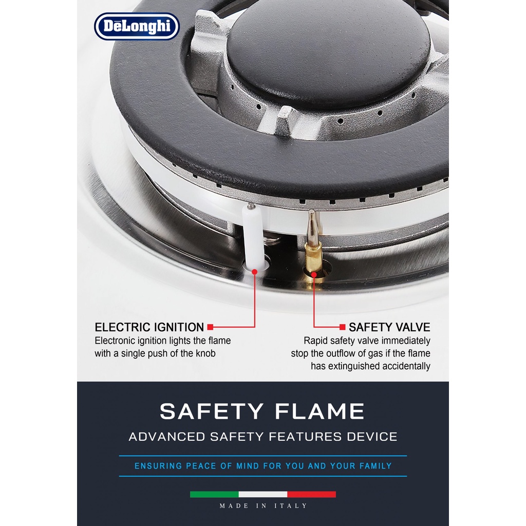 DeLonghi Gas Hob Cooker Stainless Steel Stove 4 Burners Hob IL419 Electric Ignition Safety Device
