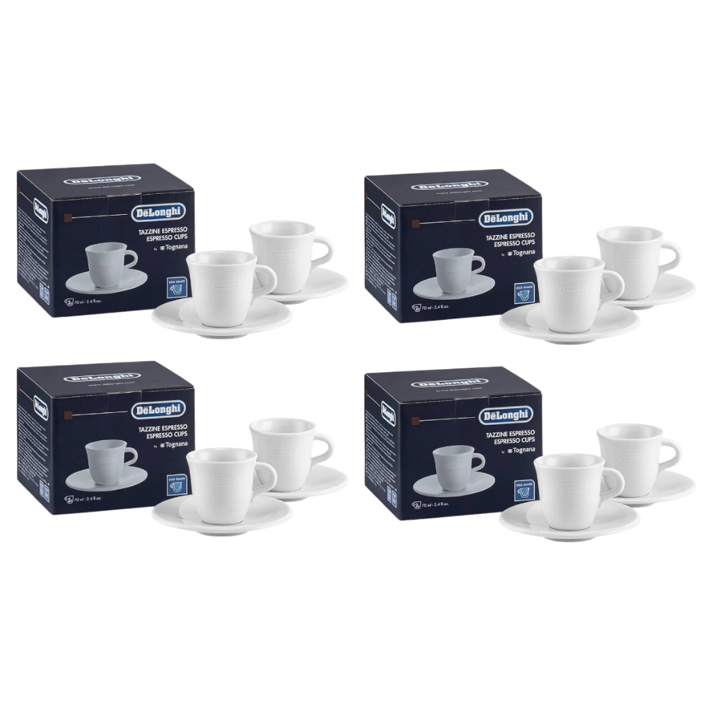 DeLonghi Porcelain Espresso Cups Set-2 Cups, 2 Plates, 70 ml Cap, Microwave Dishwasher Safe DLSC308