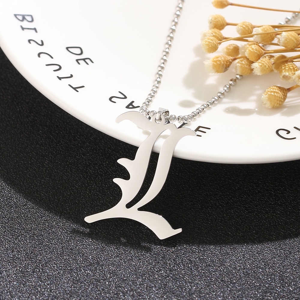 Death Note L Lawliet Necklace Stainless Steel Old English Letter Pendant Beads Chain Necklaces Cosplay Jewelry